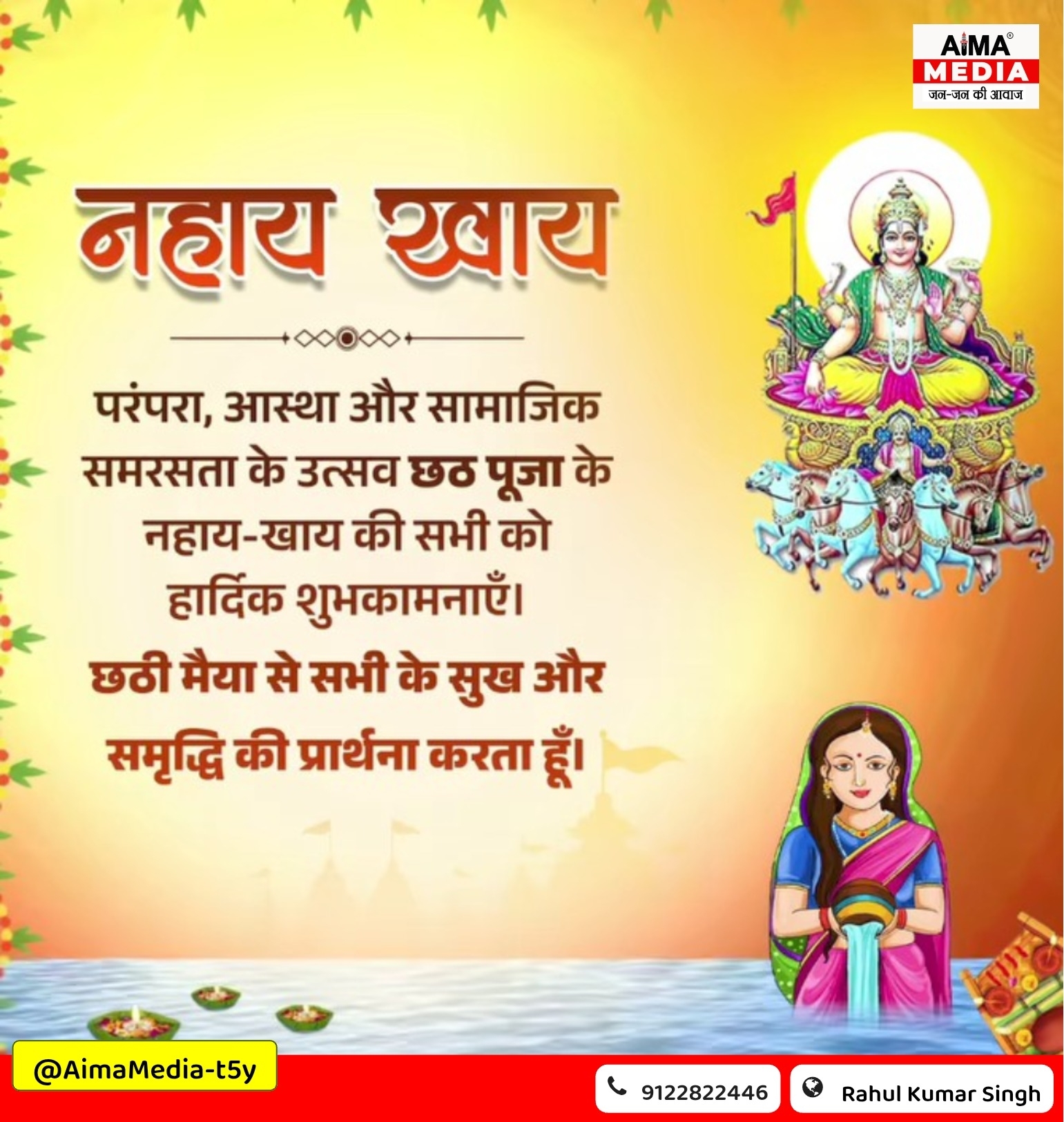 ЁЯМ╕ Aima Media рдХреА рдУрд░ рд╕реЗ ЁЯМ╕ рдЖрдк рд╕рднреА рджреЗрд╢рд╡рд╛рд╕рд┐рдпреЛрдВ рдХреЛ рдЫрда рдкреВрдЬрд╛ рдХреЗ рдирд╣рд╛рдп-рдЦрд╛рдп рдХреА рд╣рд╛рд░реНрджрд┐рдХ рд╢реБрднрдХрд╛рдордирд╛рдПрдВ! ЁЯЩП