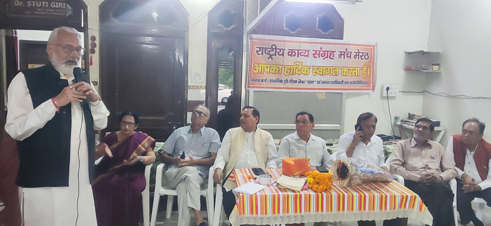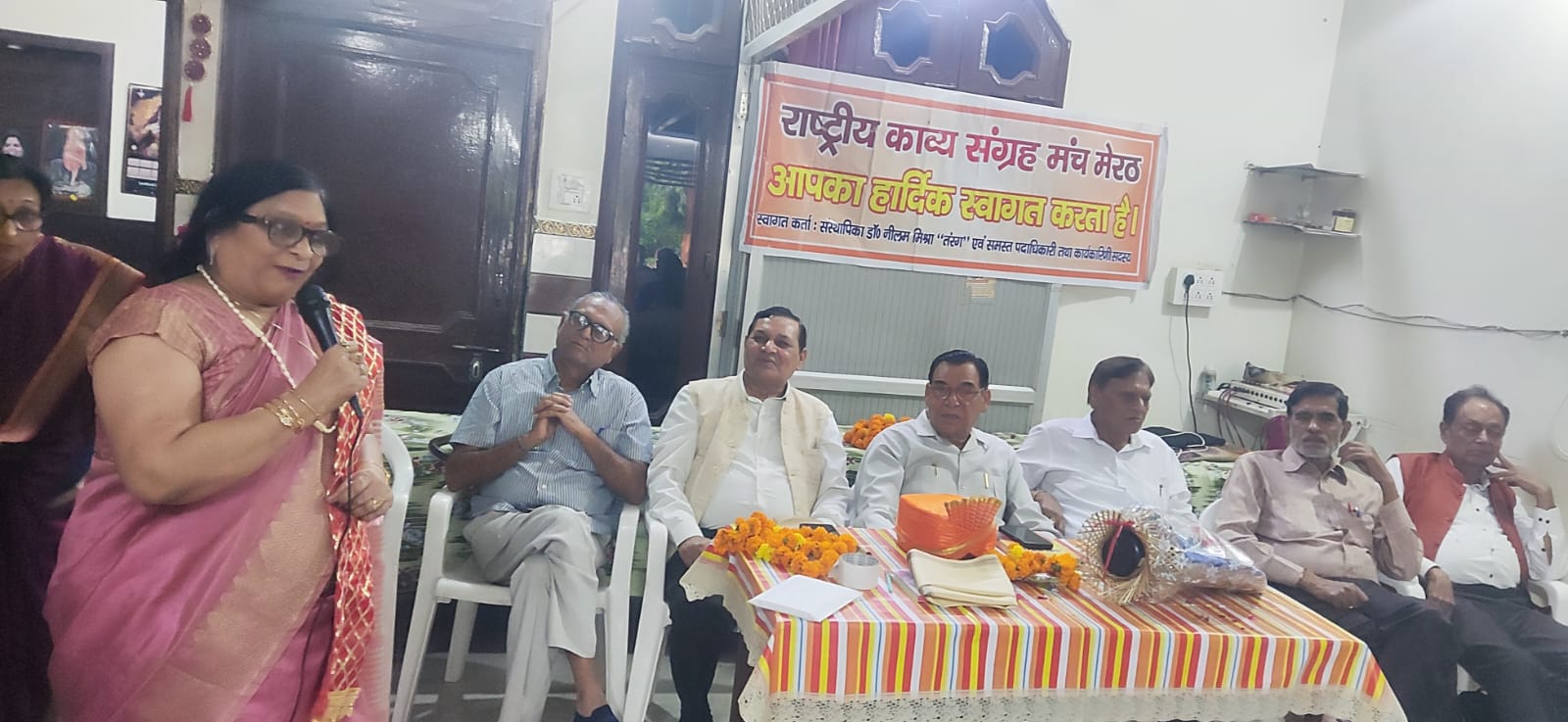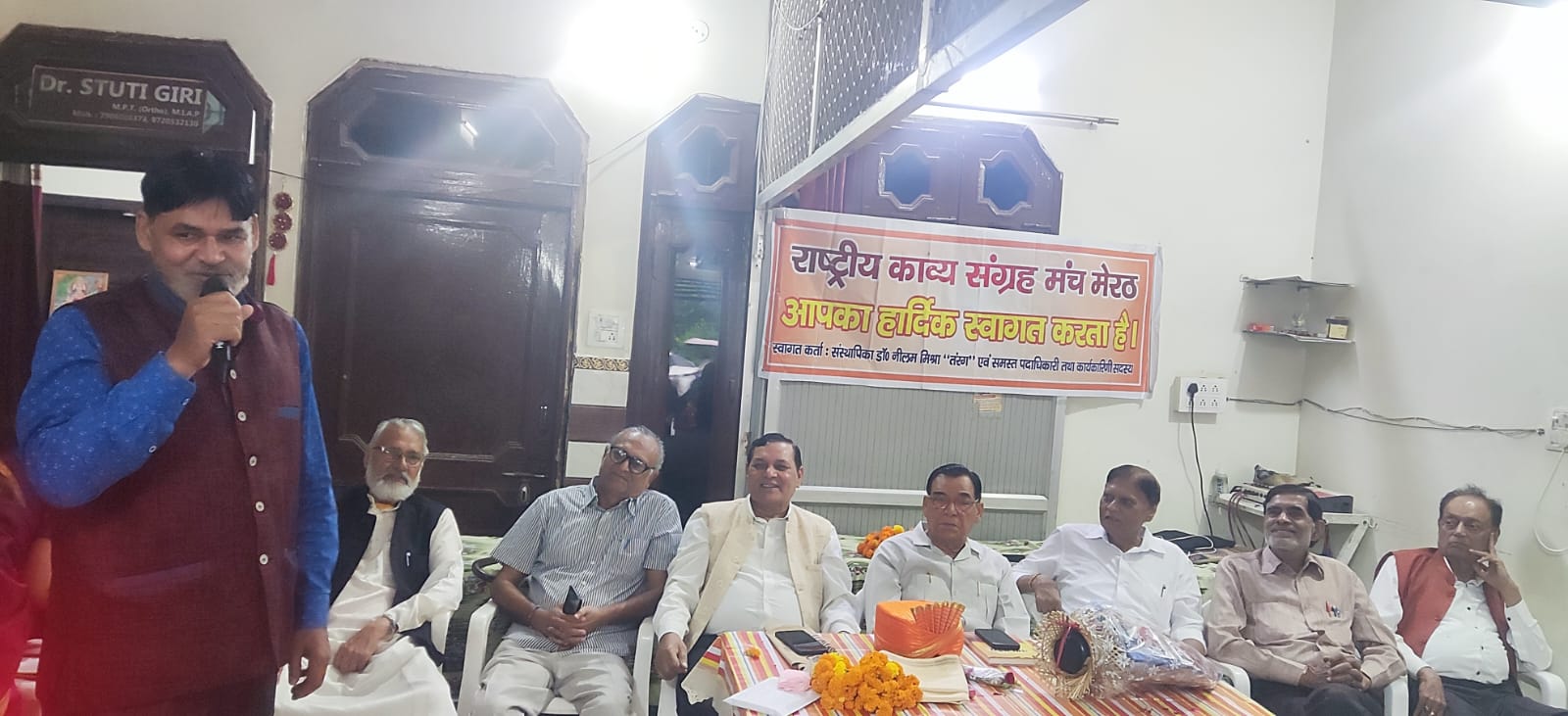 मेरठ - राष्ट्रीय काव्य संग्रह मंच के द्वारा दीपावली काव्य मिलन समारोह ममता गोस्वामी ट्रस्ट फूल बाग कॉलोनी में कवियों के संग हुआ। कार्य क्रम का आरंभ माँ शारदे के समक्ष नीलम मिश्रा , मंगल सिंह मंगल दीवान गिरि ने दीप प्रज्वलन कर हुआ। सरस्वती वंदना धर्म पाल मित्रा द्वारा की गयी।