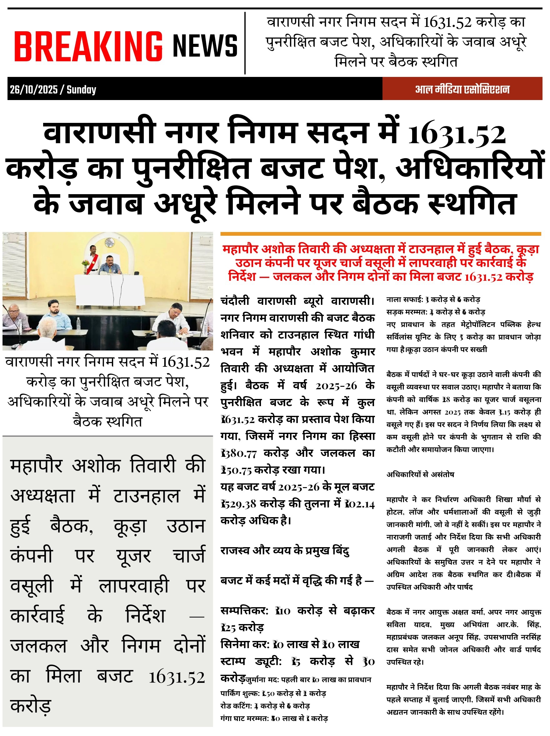 वाराणसी नगर निगम सदन में 1631.52 करोड़ का पुनरीक्षित बजट पेश, अधिकारियों के जवाब अधूरे मिलने पर बैठक स्थगित