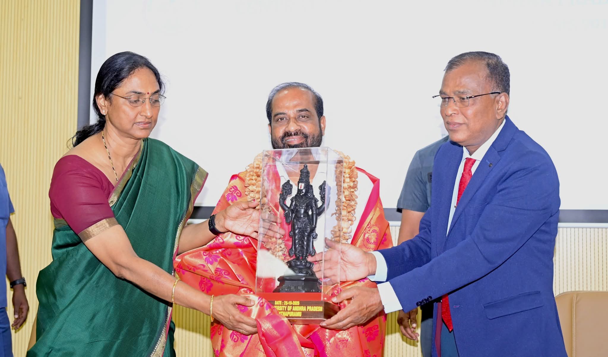 *శనివారం ఆంధ్రప్రదేశ్ కేంద్రీయ విశ్వవిద్యాలయం, అనంతపురం (Central University of Andhra Pradesh)లో “ఆత్మనిర్భర్ భారత్” అంశంపై మంత్రివర్యులు సత్యకుమార్ యాదవ్ గారు విశిష్ట ఉపన్యాసం ఇచ్చారు. తన ప్రసంగంలో ఆయన “ఆత్మనిర్భర్ భారత్కు మూడు స్తంభాలు స్వదేశీ, స్వభాషా మరియు స్వభూష” అని పేర్కొన్నారు. విద్యార్థులకు ఈ మూడు అంశాల ప్రాధాన్యాన్ని వివరించిన ఆయన, స్థానిక ఉత్పత్తులను ప్రోత్సహించాలని, తల్లిభాషపై గర్వం కలిగి ఉండాలని, మన సంస్కృతి, వారసత్వాన్ని విలువైనదిగా భావించాలని సూచించారు.