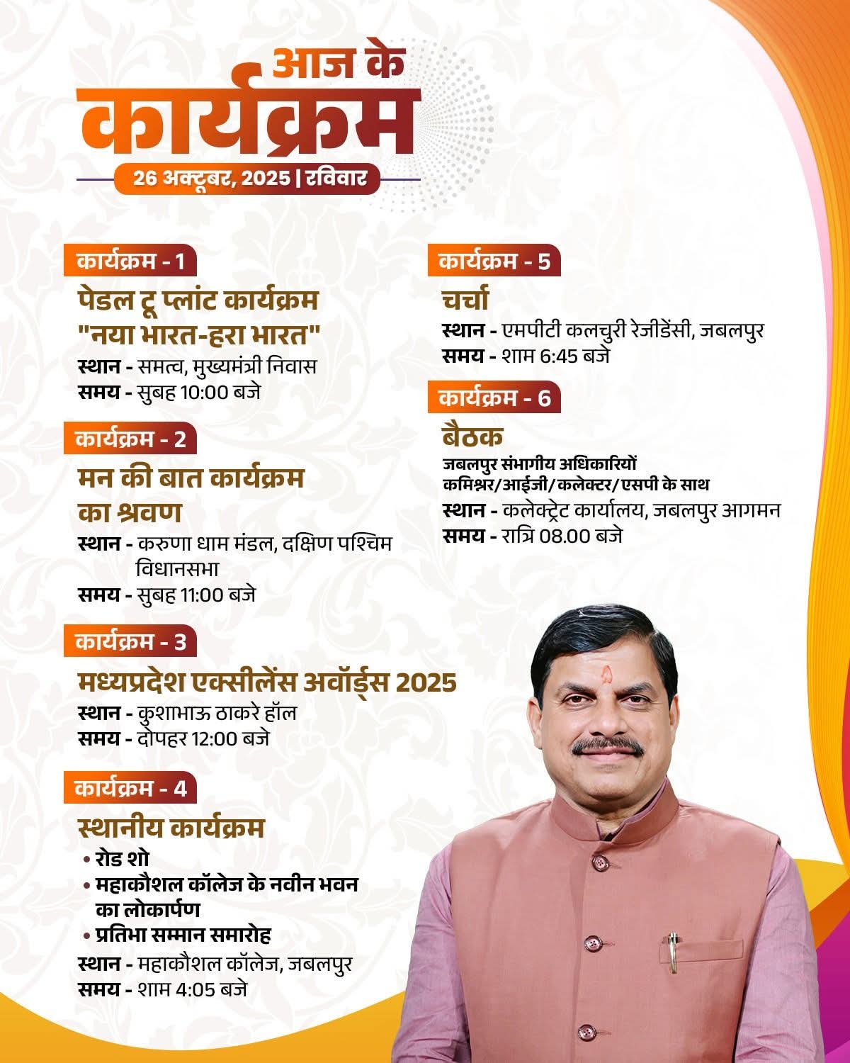 माननीय मुख्यमंत्री जी के आज के कार्यक्रम...26 अक्टूबर, 2025Dr Mohan Yadav