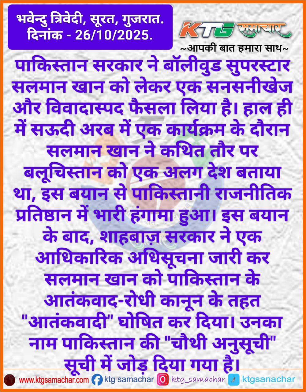 पाकिस्तान सरकार ने बॉलीवुड सुपरस्टार सलमान खान को लेकर एक सनसनीखेज और विवादास्पद फैसला लिया है।