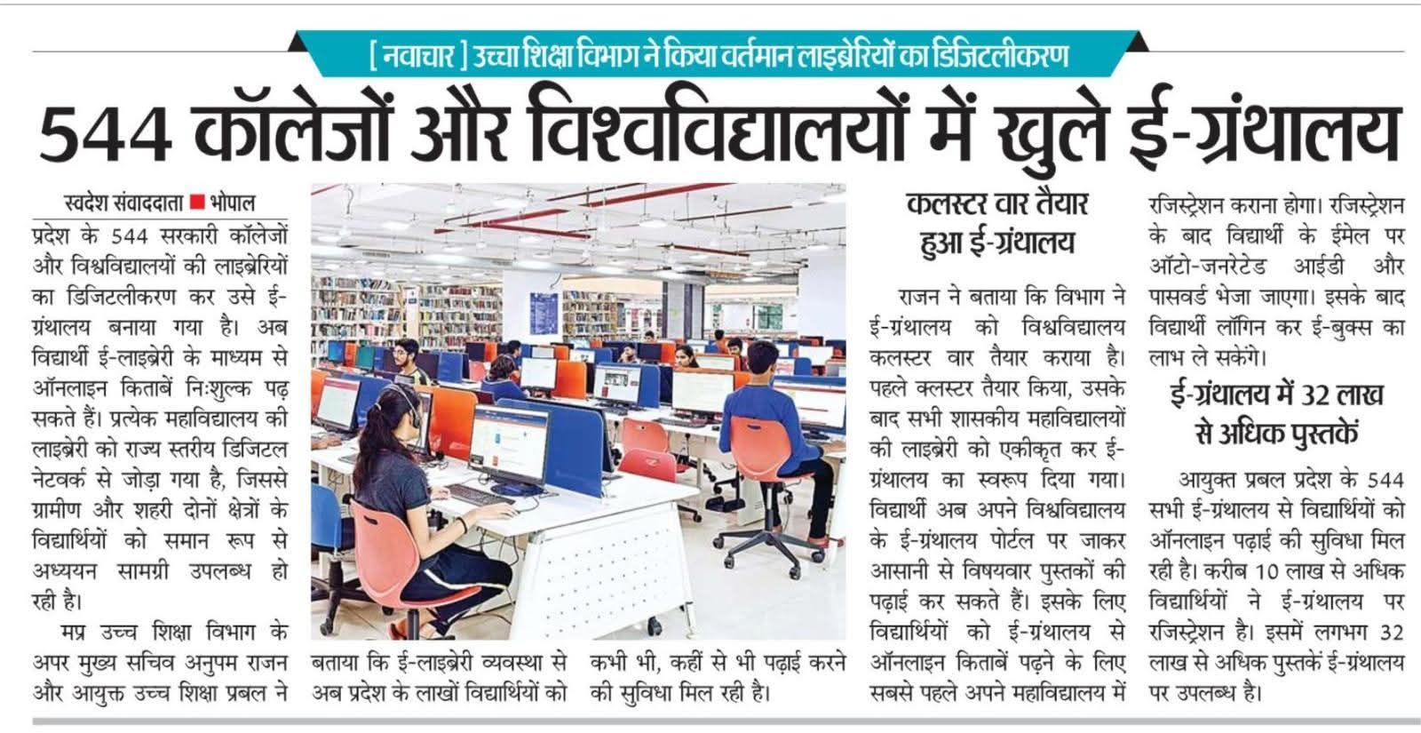 मध्यप्रदेश में 544 काॅलेजों और विश्वविद्यालयों में खुले ई ग्रंथालय