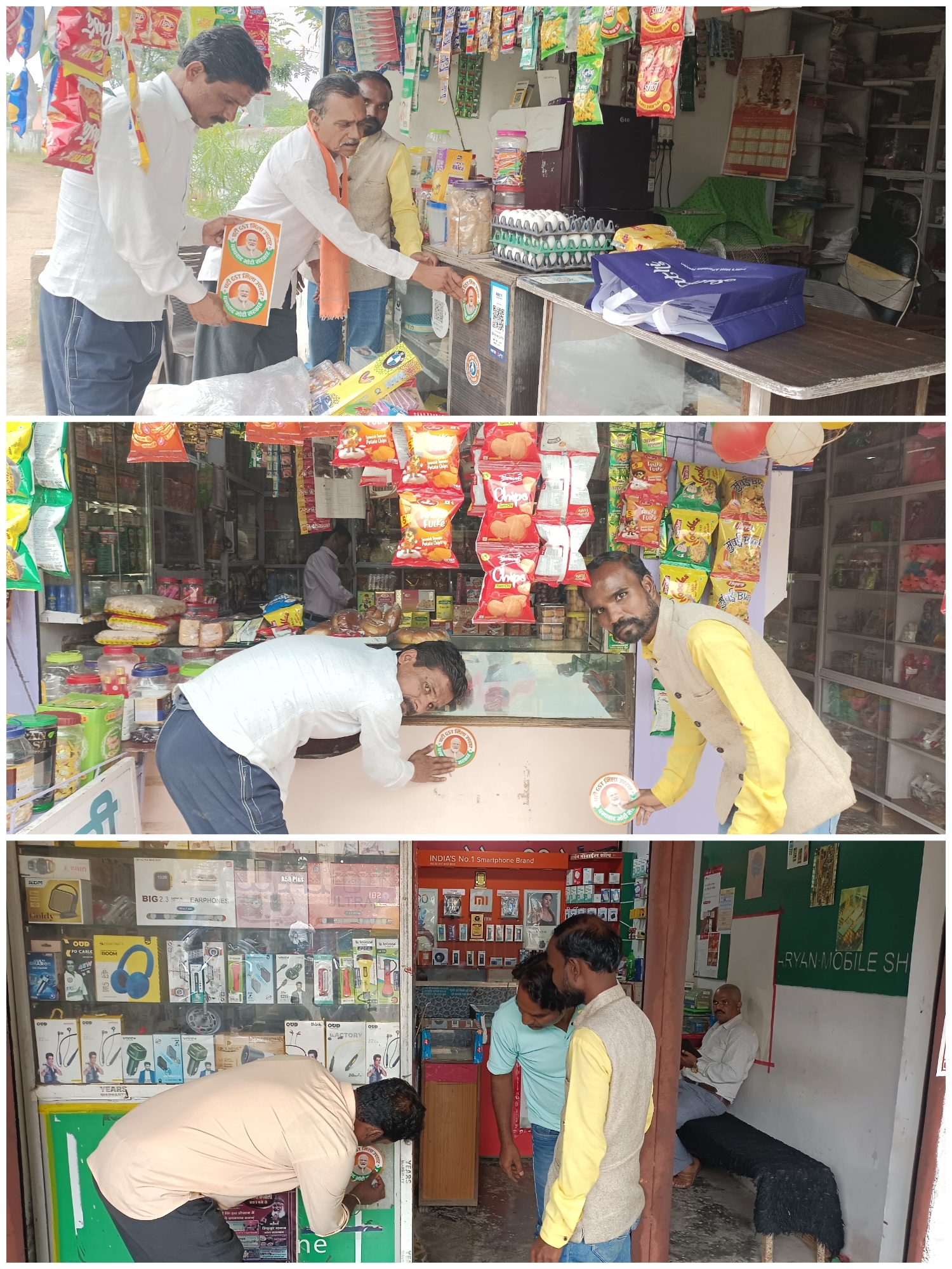 भाजपा नगर मंडल जुन्नारदेव के पालाचौरई द्वारा हर घर स्वदेशी घर घर स्वदेशी अभियान के तहत गुढी बस स्टैंड पर व्यावसायिक प्रतिष्ठानों पर पहुंचकर स्वदेशी अभियान, जीएसटी कम होने स्टीकर चिपका,कर