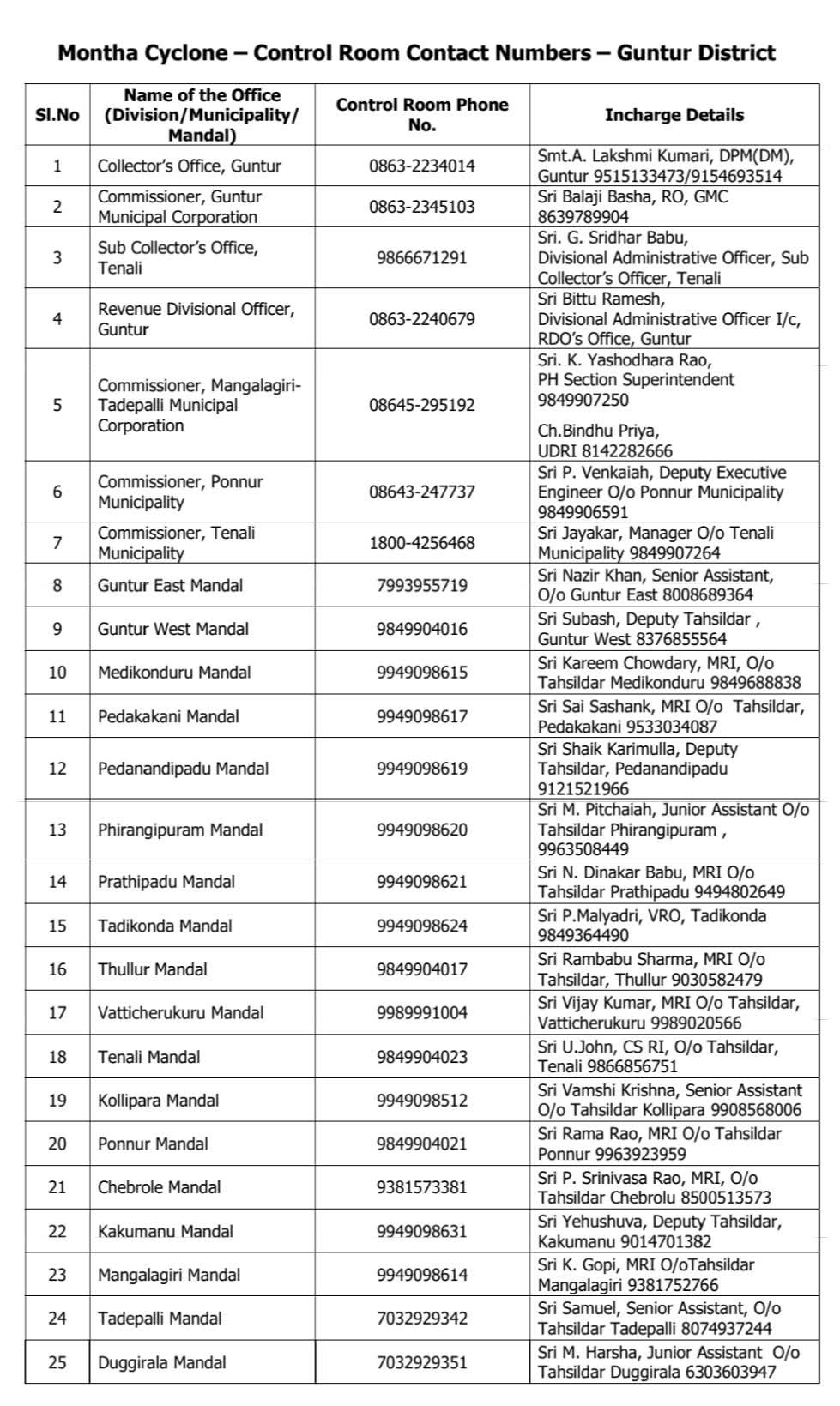 మొంథా తుఫాన్ కంట్రోల్ రూమ్ ఏర్పాటుచేశారు...