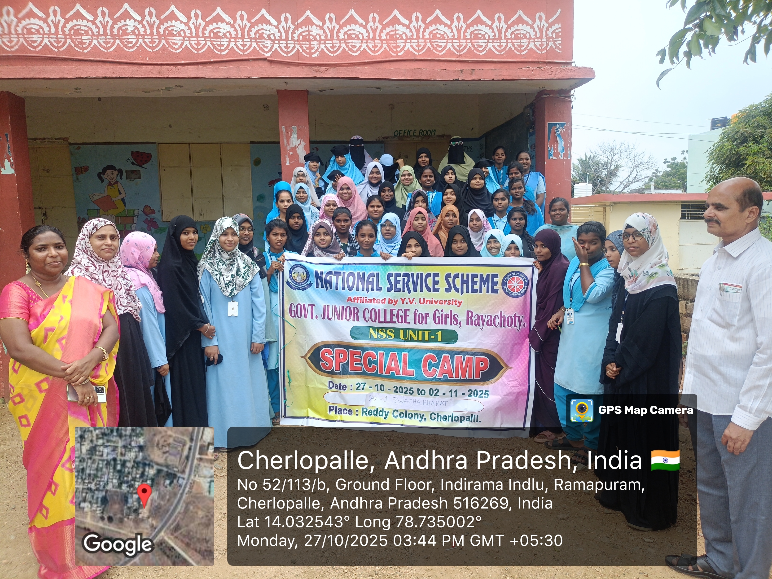 ప్రభుత్వ బాలికల జూనియర్ కళాశాల రాయచోటి ఈరోజు N S S ప్రత్యేక శిబిరం రెడ్డికాలని M P U P Urdu school నందు నిర్వహించడజరుగుతుంది ఇందులో మొదటి రోజు భాగంగా స్వచ్ఛ భారత్ నిర్వహించడం జరిగింది ఈ కార్యక్రమం లో N S S P O ప్రిన్సి పాల్ శ్రీ G. వెంకట రమణ గారు అధ్యాపకులు మరియు వాలంటీర్స్ పాల్గొన్నారు