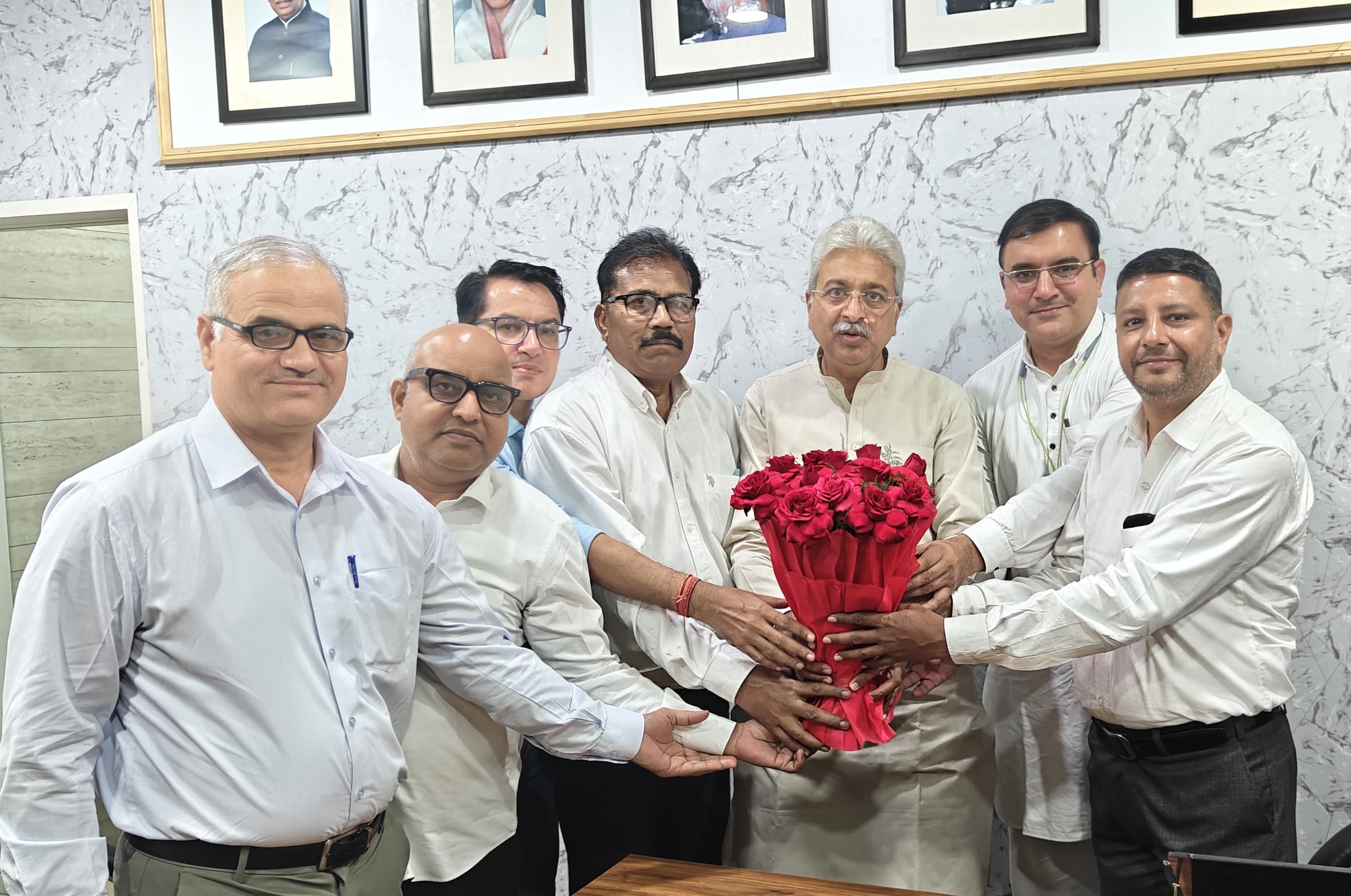 Haryana Congress Lok Sabha in-charges (Training) paid a courtesy visit to HPCC President Shri Rao Narendra and presented him with a bouquet of flowers