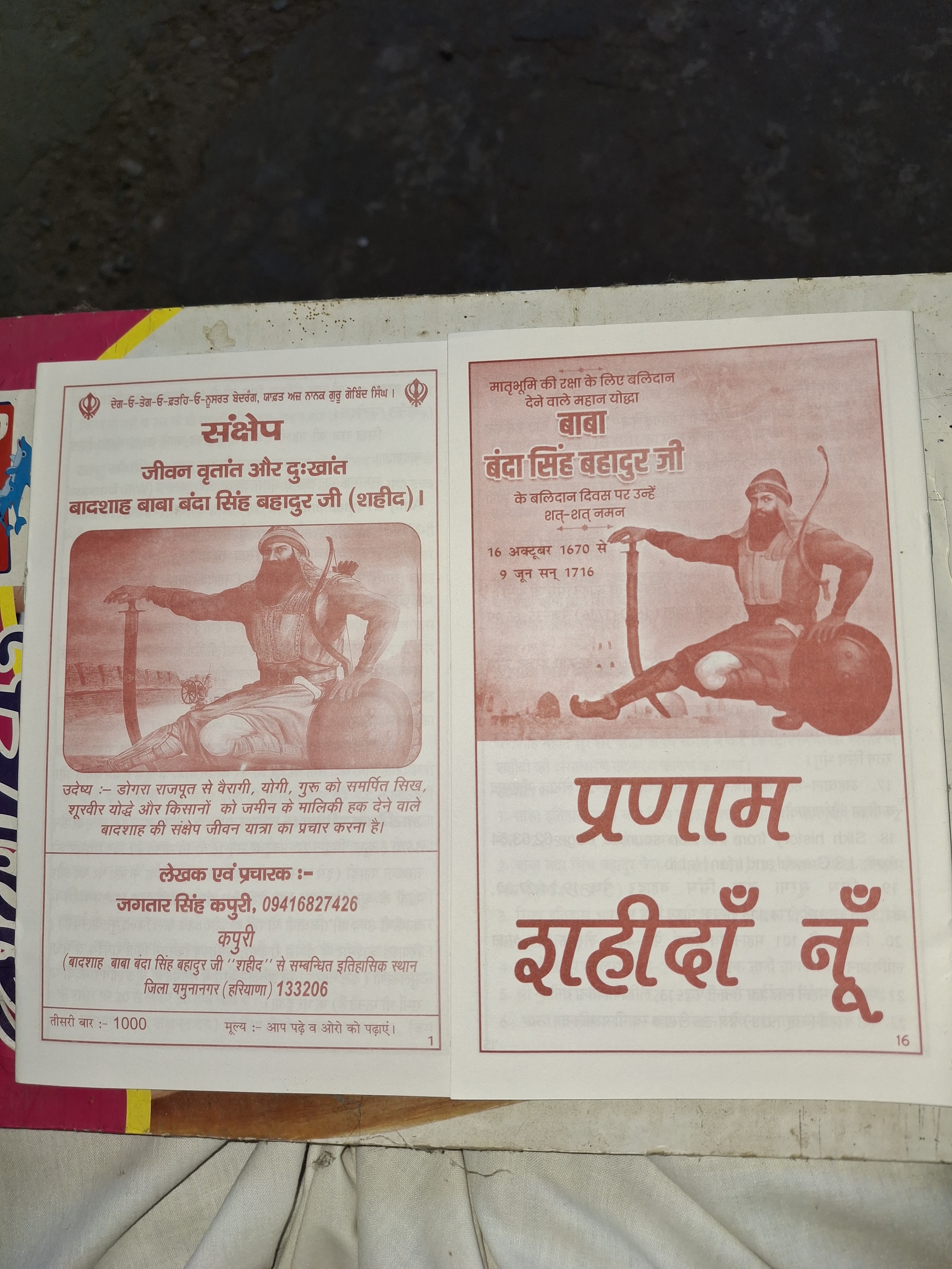 "पहले स्वतंत्रता सेनानी बादशाह बाबा बंदा सिंघ बहादुर "शहीद" जी की जयंती पर किआ नमन"!