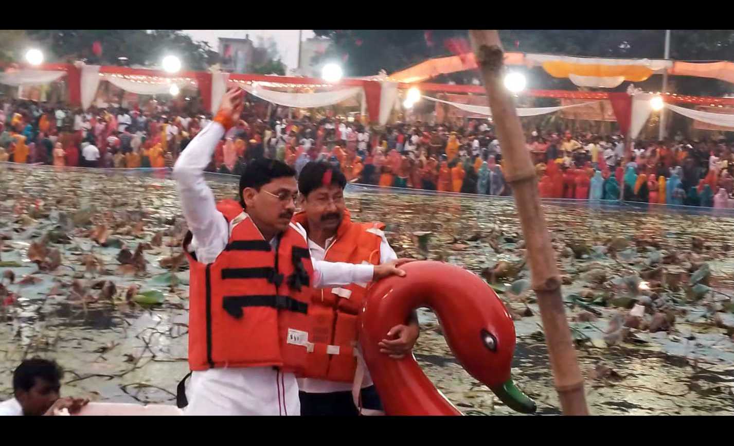 इस अवसर पर *भारतीय जनता पार्टी के पूर्व विधायक बजरंग बहादुर सिंह* और नगर पंचायत अध्यक्ष *राकेश जायसवाल* ने घाट पर उपस्थित श्रद्धालुओं का उत्साह बढ़ाया। दोनों ने *नाव पर बैठकर श्रद्धालुओं पर पुष्प वर्षा* कर इस पवित्र आयोजन को और यादगार बना दिया। श्रद्धालुओं ने इस पहल की सराहना की।