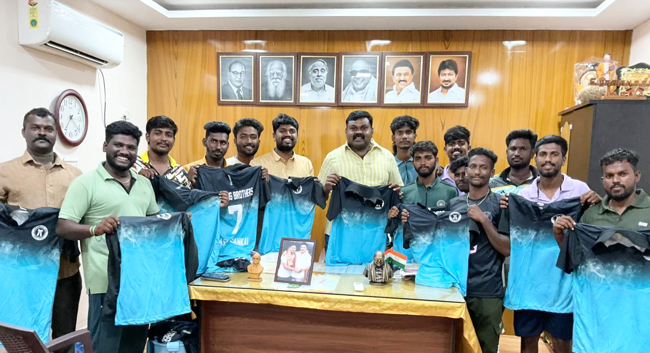 விளையாட்டு வீரர்களுக்கு தென்காசி வடக்கு மாவட்ட விளையாட்டு மேம்பாட்டு அணி அமைப்பாளர் வழக்கறிஞர் காசிராஜன் ஏற்பாட்டில் 50 க்கும் மேற்பட்ட கிரிக்கெட் விளையாட்டு வீரர்களுக்கு ஜெர்சி (டிசர்ட் ) மாவட்ட செயலாளர் சங்கரன்கோவில் சட்டமன்ற உறுப்பினர் ராஜா அவர்கள் வழங்கினார்கள் நிகழ்வில் மாவட்ட மாணவரணி துணை அமைப்பாளர் வீரமணி வீமராஜ் விளையாட்டு மேம்பாட்டு அணி நவநீத கிருஷ்ணாபுரம் சசி, அஜித், ராம் ,குருநாதன், கணேசன், வினோத் ,விக்னேஷ் ,ஜெகே,மணி மற்றும் சங்கரன்கோவில் வாசுதேவநல்லூர் சட்டமன்ற தொகுதிக்குட்பட்ட பல்வேறு கிராமத்தைச் சேர்ந்த விளையாட்டு வீரர்கள் பலர் கலந்து கொண்டனர்.