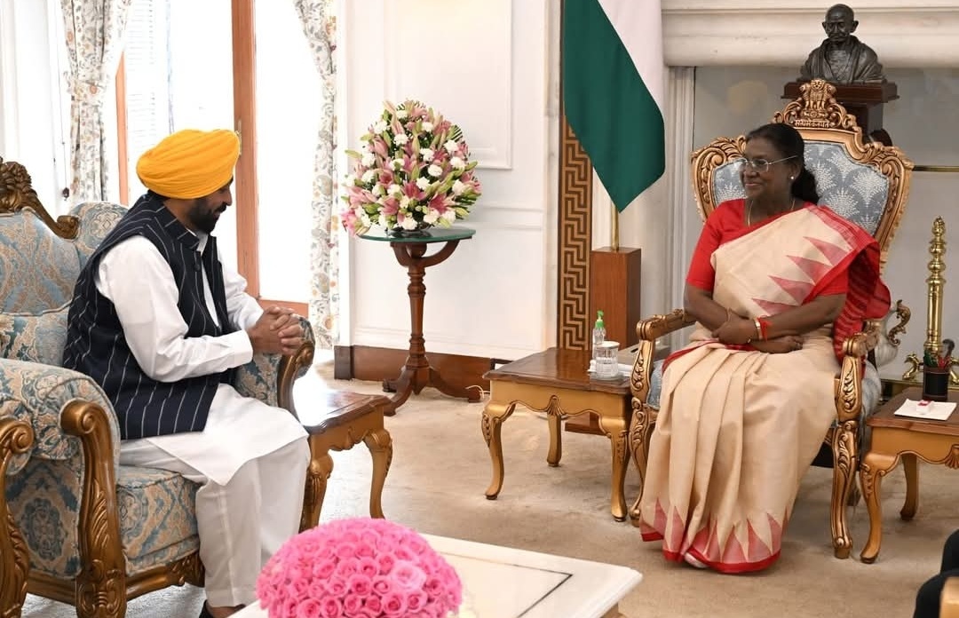 CM ਮਾਨ ਵੱਲੋਂ ਰਾਸ਼ਟਰਪਤੀ Droupadi Murmu ਨਾਲ ਮੁਲਾਕਾਤ, 'ਹਿੰਦ ਦੀ ਚਾਦਰ' ਸਾਹਿਬ ਸ੍ਰੀ ਗੁਰੂ ਤੇਗ ਬਹਾਦਰ ਜੀ ਦੇ 350 ਸਾਲਾ ਸ਼ਹੀਦੀ ਸ਼ਤਾਬਦੀ ਨੂੰ ਸਮਰਪਿਤ ਕਰਵਾਏ ਜਾ ਰਹੇ ਯਾਦਗਾਰੀ ਸਮਾਗਮਾਂ 'ਚ ਸ਼ਮੂਲੀਅਤ ਕਰਨ ਲਈ ਦਿੱਤਾ ਸੱਦਾ