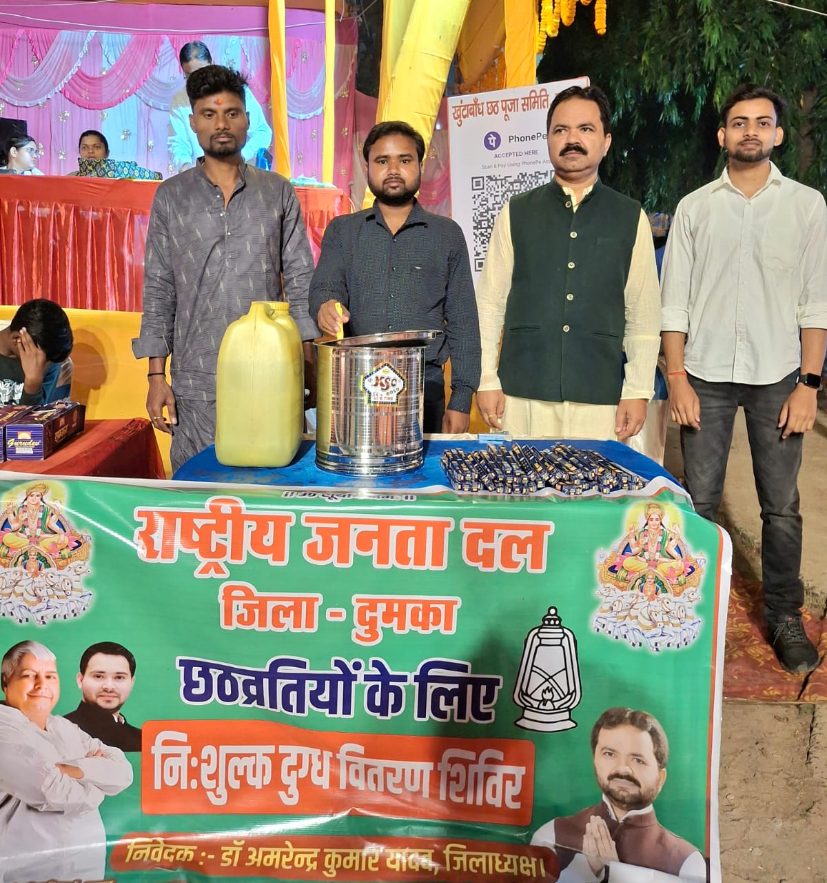 राजद ने खुंटा बांध छठ घाट पर निःशुल्क दूध वितरण शिविर लगा कर सैकड़ों छठ व्र व्रतियों को बांटे पूजा सामग्री।