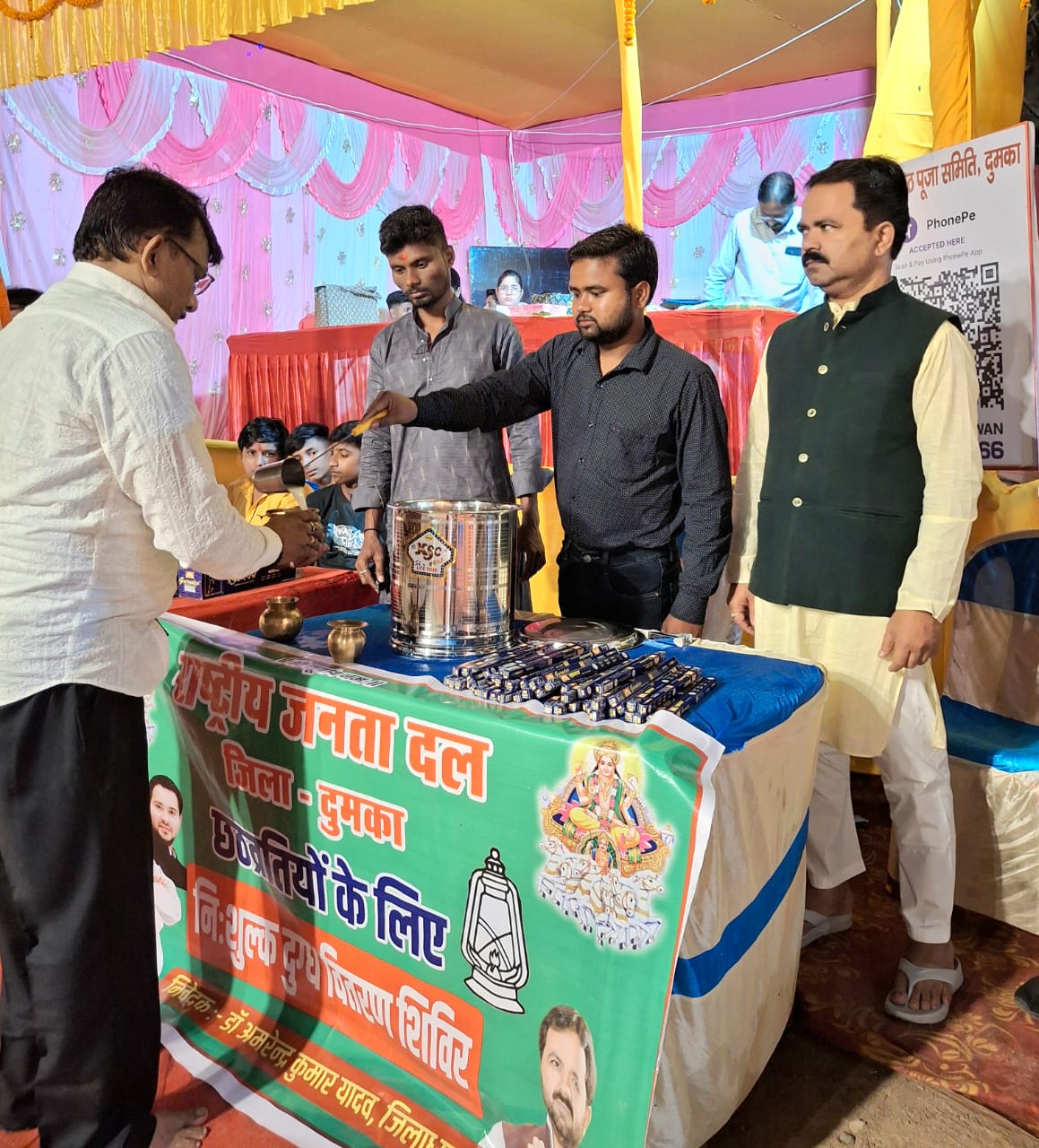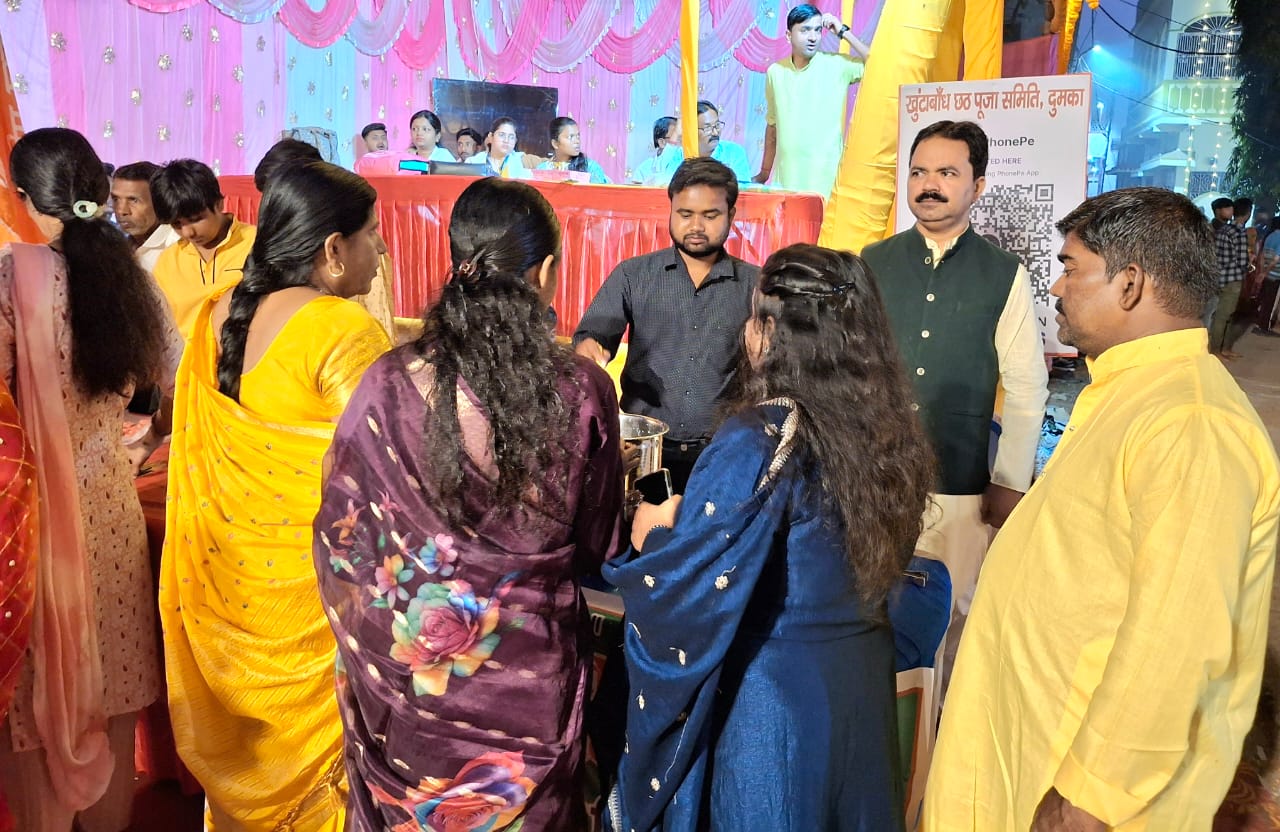 दुमका। लोक आस्था का महापर्व छठ व्रत के अवसर पर राष्ट्रीय जनता दल जिलाध्यक्ष डॉ अमरेन्द्र कुमार यादव के द्वारा खुटा बांध तालाब के छठ घाट पर छठ व्रतियों के अर्घ्य के लिए दूध, गंगा जल, अगरबत्ती आदि का निःशुल्क वितरण किया। छठ व्रतियों के लिए निशुल्क दूध वितरण शिविर लगा कर छठ व्रतियों की सेवा में राजद कार्यकर्ता तत्पर रहे। राजद कार्यकर्ताओं ने सैकड़ो छठव्रतियों के बीच पूजन सामग्री का वितरण किया।