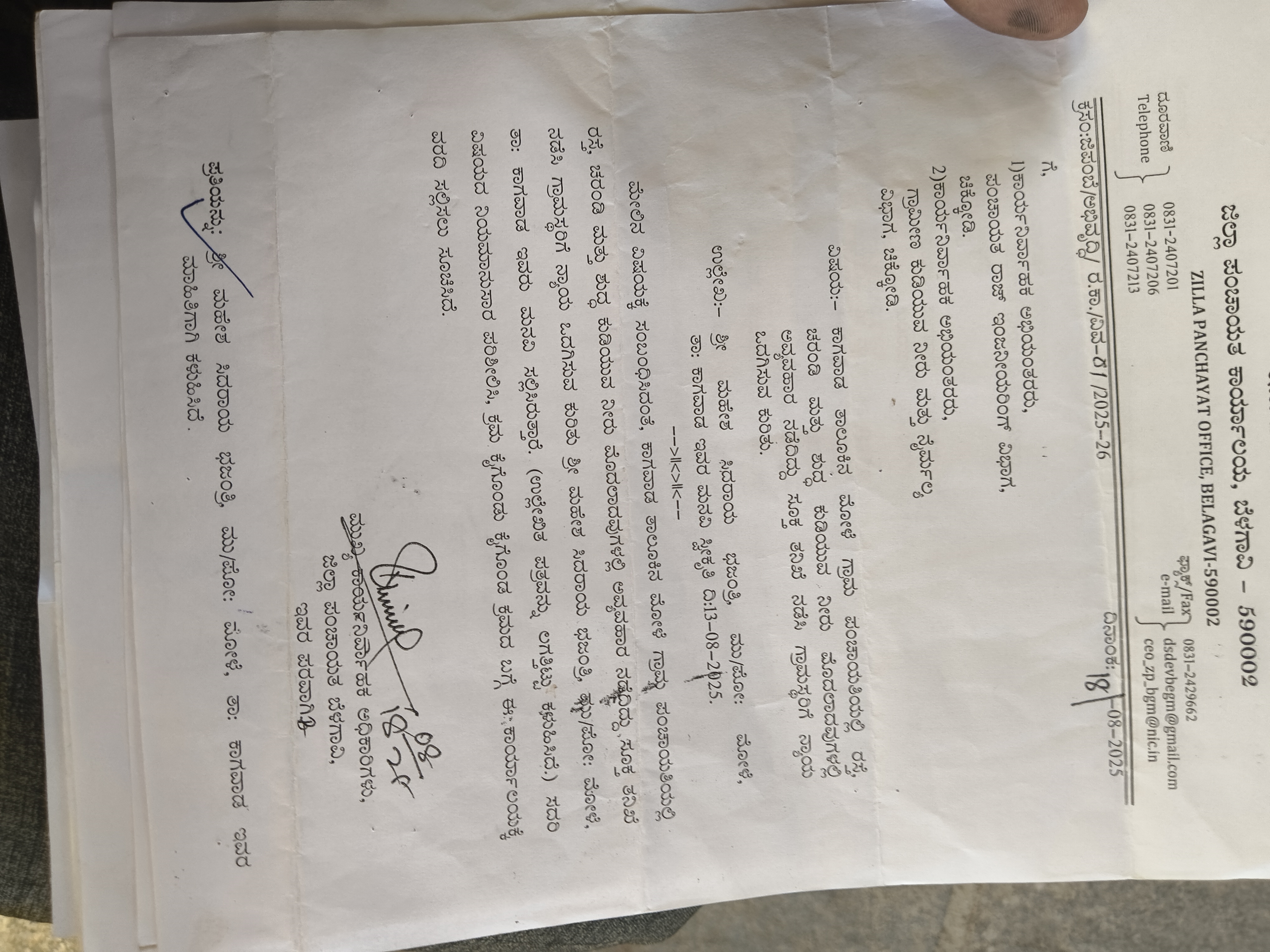 ಸಂಬಂಧಪಟ್ಟ ಅಧಿಕಾರಿಗಳಿಗೆ ಅರ್ಜಿ ಗ್ರಾಮ ಪಂಚಾಯಿತಿ ಅಧಿಕಾರಿ ಮುಖ್ಯ ಕಾರ್ಯನಿರ್ವಹಕ ಅಧಿಕಾರಿ ಜಿಲ್ಲಾ ಪಂಚಾಯಿತಿ ಬೆಳಗಾವಿ ಇವರೆಲ್ಲರಿಗೂ ಅರ್ಜಿ ಸಲ್ಲಿಸಲಾಗಿದೆ ಅಧಿಕಾರಿಗಳಿಂದ ರಿಸೀವ್ಡ್ ನಮಗೆ ಬಂದರು ಯಾವುದೇ ಪ್ರಯೋಜನವಾಗಿಲ್ಲ?