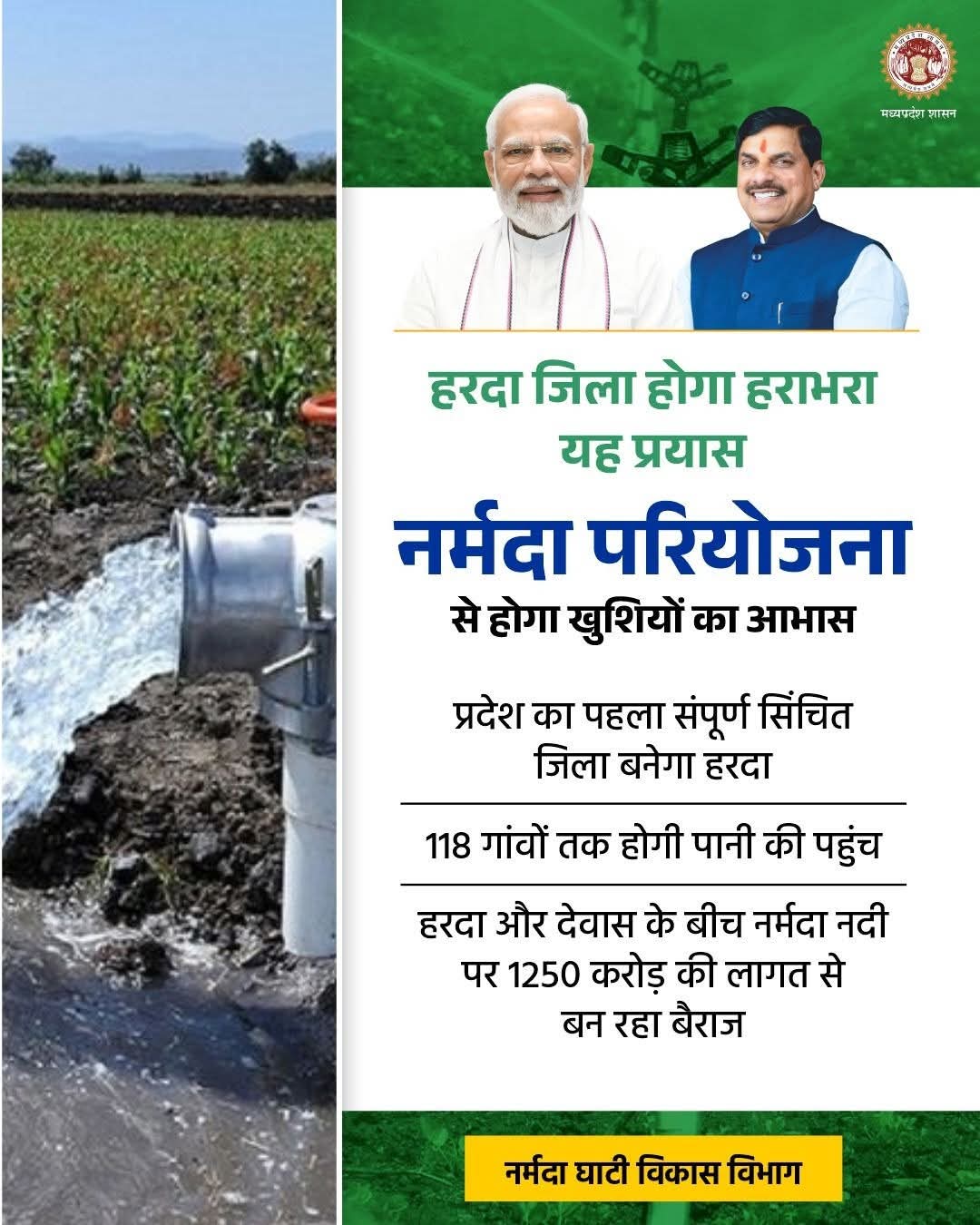 हरियाली के साथ आएगी खुशहाली, नर्मदा घाटी परियोजना से होगी हर खेत की बहाली...