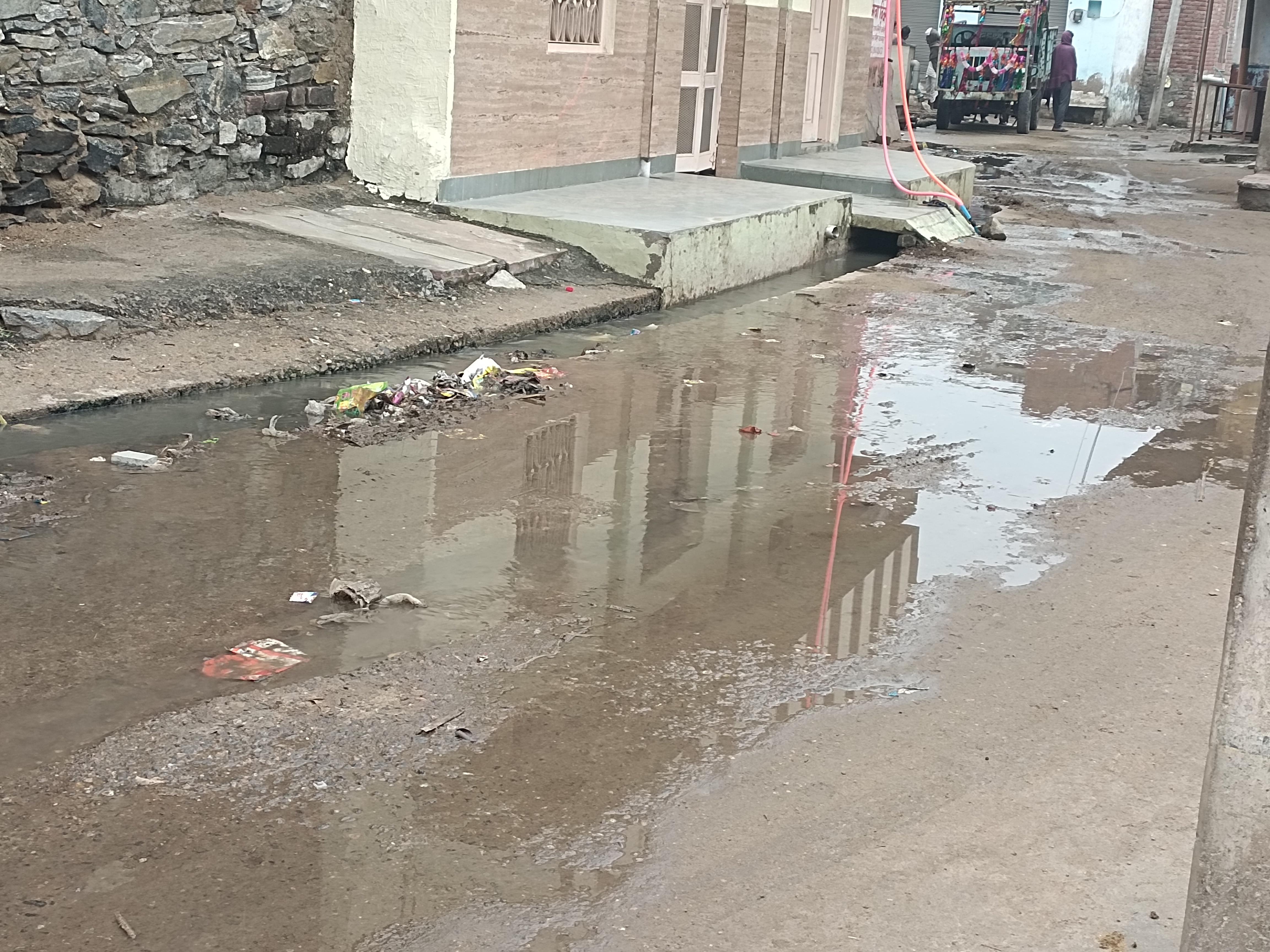 भिनाय उपखंड के ग्रामपंचायत बड़ली में लंबे समय से नालियों की सफाई नहीं होने से सड़कों पर गंदा पानी बे रहा है