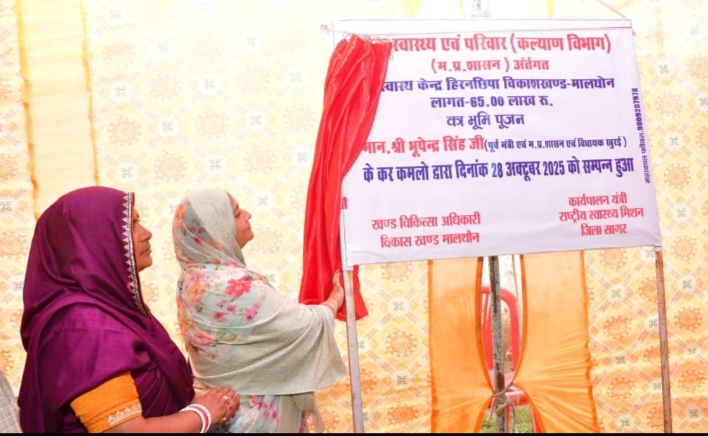 मालथौन के तिगरा बुजुर्ग में नवीन पंचायत भवन निर्माण कार्य का भूमिपूजन हुआ पूर्व ज़िला पंचायत उपाध्यक्ष श्रीमती सरोज सिंह ने किया भूमिपूजन,37.50 लाख रुपए की लागत से बनेगा नवीन पंचायत भवनश्रीमति सरोज सिंह ने आम जनों को संबोधित किया,इस अवसर पर समस्त भाजपा कार्यकर्तागण, क्षेत्रवासी व अधिकारीगण उपस्थित रहे।वहीं ग्राम हिरनछिपा (मालथौन) में नवीन उप स्वास्थ्य केंद्र भवन निर्माण होगा,पूर्व ज़िला पंचायत उपाध्यक्ष श्रीमती सरोज सिंह ने किया भूमिपूजन,65 लाख रुपए की लागत से बनेगा नवीन उप स्वास्थ्य केन्द्र का भवनश्रीमति सरोज सिंह नेआमजन को संबोधित किया। इस अवसर पर समस्त भाजपा कार्यकर्तागण, क्षेत्रवासी व अधिकारीगण उपस्थित रहे।