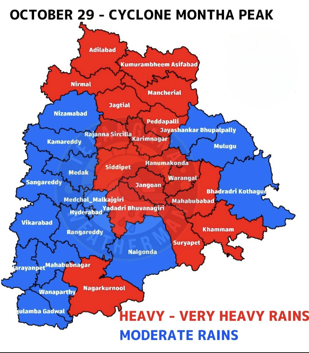 Moderate to Heavy Rain with Thunderstorms with surface wind 40-50 kmph is very likely to occur at many places over Hanumakonda,Hyderabad, Jangaon, Jogulamba Gadwal, Mahabubabad, Mahbubnagar, Medchal-Malkajgiri, Narayanpet, Ranga Reddy, Wanaparthy, Warangal, Yadadri Bhuvanagiri in next 3 hours - By TGiCCC.