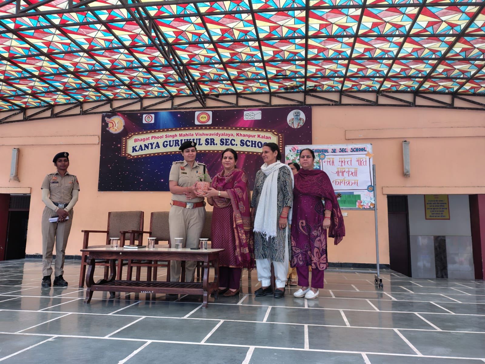 खानपुर कलां -29 अक्टूबर। भगत फूल सिंह महिला विश्वविद्यालय खानपुर कलां के कन्या गुरुकुल वरिष्ठ माध्यमिक विद्यालय में सरदार वल्लभ भाई पटेल की जयंती के उपलक्ष्य में पुलिस विभाग के तत्वाधान में नशा मुक्ति जागरूकता अभियान कार्यक्रम का आयोजन किया गया। कार्यक्रम की अध्यक्षता स्कूल प्राचार्य श्रीमती सुमिता सिंह ने की। जागरूकता कार्यक्रम में मुख्य वक्ता के रूप में खानपुर कलां स्थित महिला थाना की एस एच ओ श्रीमती सुदेश ने छात्राओं को सम्बोधित किया ।श्रीमती सुदेश ने छात्राओं को संबोधित करते हुए कहा कि नशा एक अभिशाप है । यह एक ऐसी बुराई है, जिससे इंसान का अनमोल जीवन समय से पहले ही मौत का शिकार हो जाता है। उन्होंने कहा कि नशे से दूर रहें और अपनों को भी नशे  से दूर रहने की सलाह दें। उन्होंने छात्राओं को पुलिस हेल्पलाइन नंबर बारे में जानकारी देते हुए बताया कि अगर आपको या  परिवार के कोई भी सदस्य या आपके मित्र जो 18 साल से कम उम्र का हो तो तत्काल पुलिस सहायता के लिए आप 1098 पर कॉल कर सकते है।छात्राओं ने नुक्कड़ नाटक के माध्यम से समाज में बढ़ रही नशे की लत के कारण फैली समस्याएं एवं कुरीतियों से अवगत करवाया।प्राचार्य श्रीमती सुमिता सिंह ने श्रीमती सुदेश व उनकी टीम का धन्यवाद करते हुए कहा कि पुलिस विभाग द्वारा चलाए जा रहे विभिन्न सामाजिक सुरक्षा के कार्यक्रम बहुत ही सराहनीय है। उन्होंने कहा कि कानून और व्यवस्था बनाए रखने, अपराधों को रोकने और नागरिकों की सुरक्षा करने में हमारी पुलिस सराहनीय काम कर रही है। कार्यक्रम का संचालन श्रीमती ज्योति एवं श्रीमती नीलम रानी ने किया।फोटो कैप्शन ;-01 एस एच ओ श्रीमती सुदेश का स्वागत करते स्कूल की प्राचार्य सुमिता सिंह। 02 नुक्कड़ नाटक की प्रस्तुति देती छात्राएं।