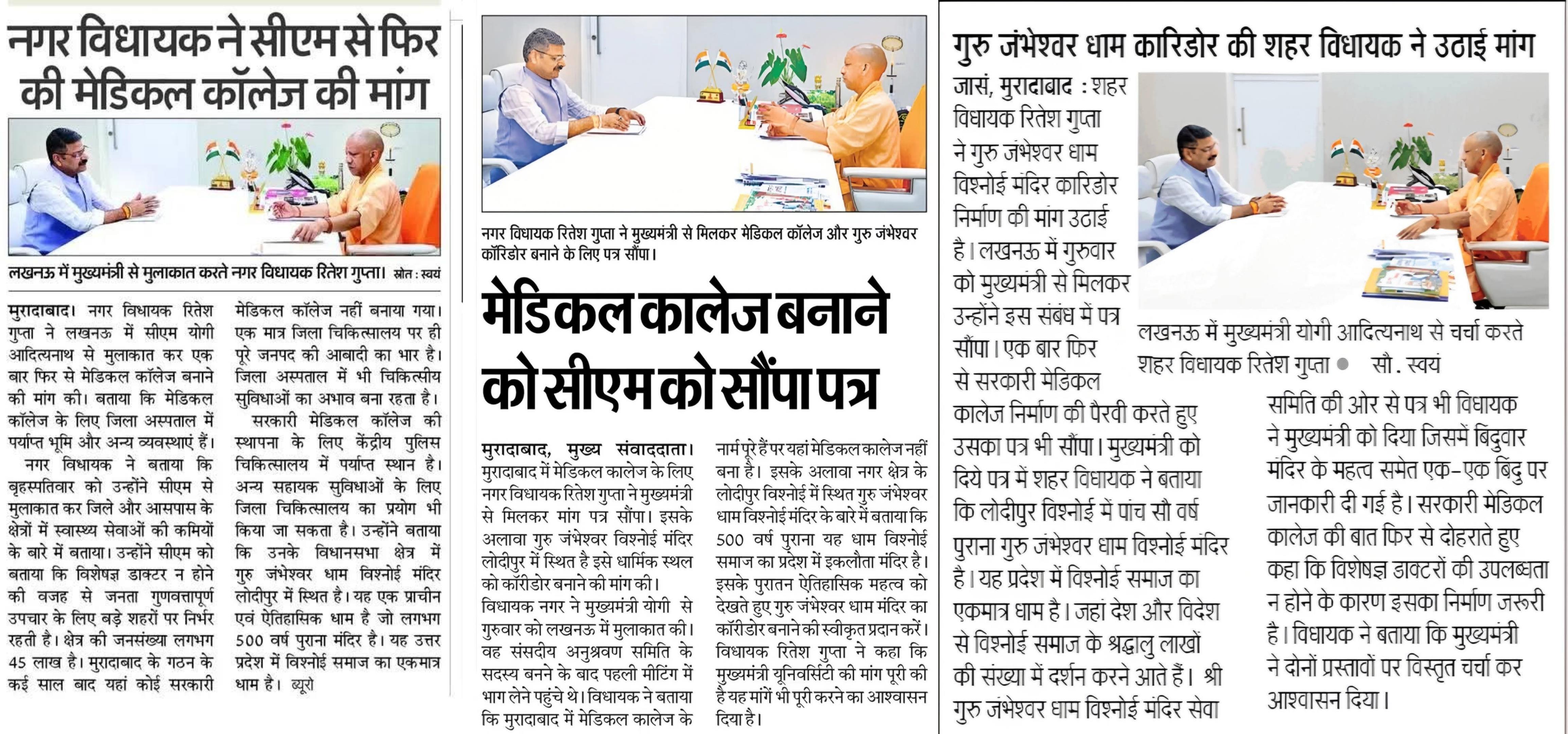 लखनऊ में मुख्यमंत्री जी से मुलाक़ात करते नगर विधायक रितेश गुप्ता जी