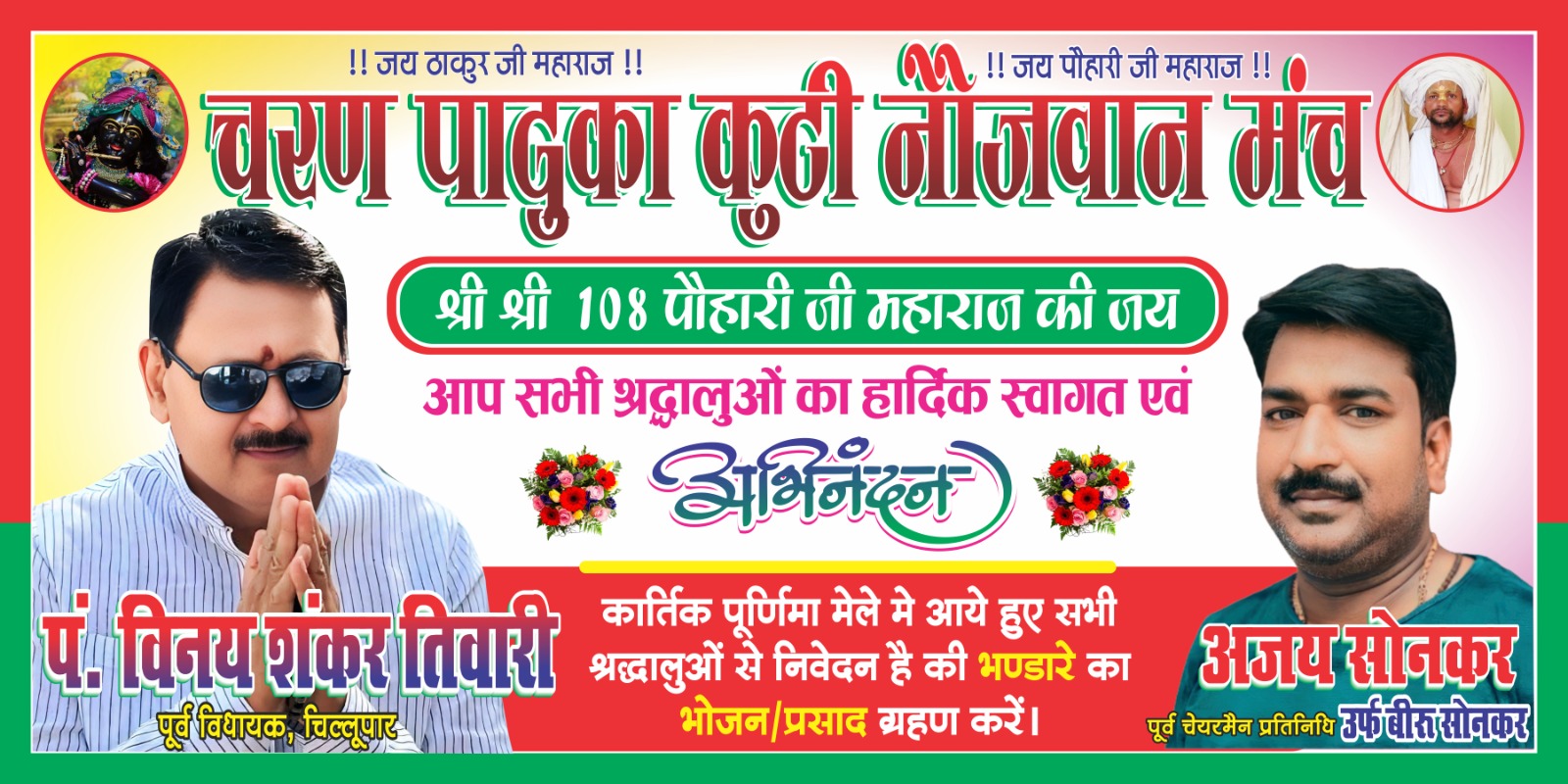 рдХрд╛рд░реНрддрд┐рдХ рдкреВрд░реНрдгрд┐рдорд╛ рдХреЗ рдЕрд╡рд╕рд░ рдкрд░ **рдЪрд░рдг рдкрд╛рджреБрдХрд╛ рдиреМрдЬрд╡рд╛рди рдордВрдЪ** рджреНрд╡рд╛рд░рд╛ 04 рдирд╡рдВрдмрд░ 2025 рдХреЛ **рдкреМрд╣рд╛рд░реА рдорд╣рд╛рд░рд╛рдЬ рдХреБрдЯрд┐рдпрд╛ рдкрд░рд┐рд╕рд░** рдореЗрдВ рднрд╡реНрдп рднрдВрдбрд╛рд░реЗ рдХрд╛ рдЖрдпреЛрдЬрди рдХрд┐рдпрд╛ рдЬрд╛рдПрдЧрд╛ред