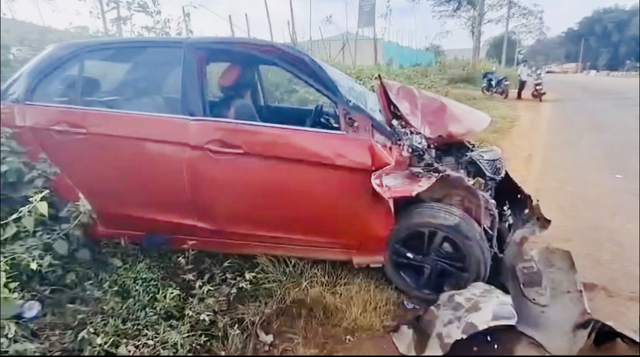 As per eyewitness accounts, the car reportedly collided head-on with a truck bearing registration number OD 10 P 6229, leading to severe damage to the vehicle and serious injuries to the occupants.