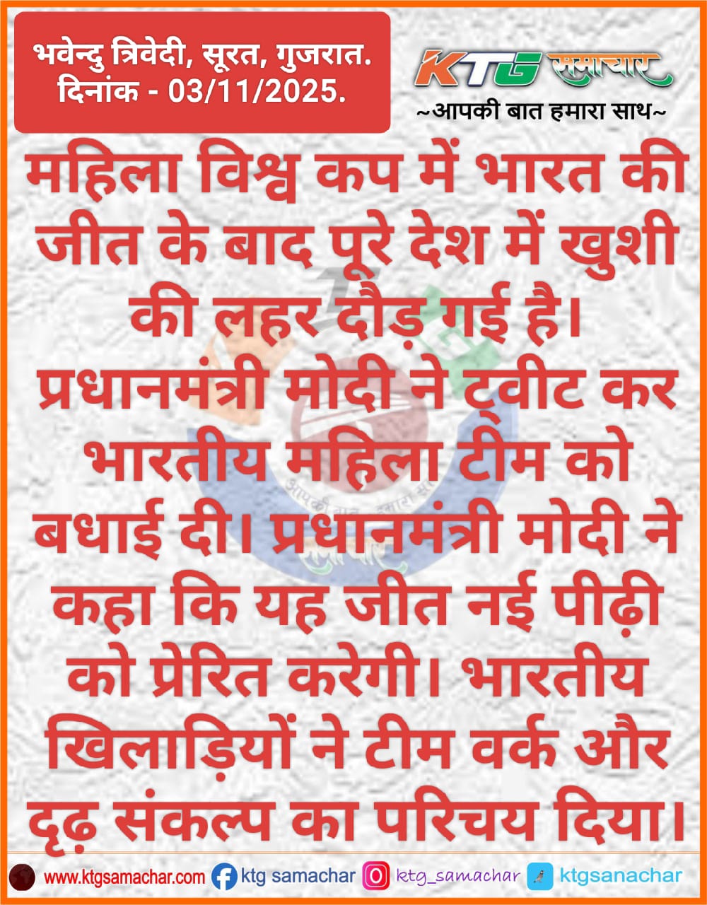 प्रधानमंत्री मोदी ने ट्वीट कर भारतीय महिला टीम को बधाई दी।