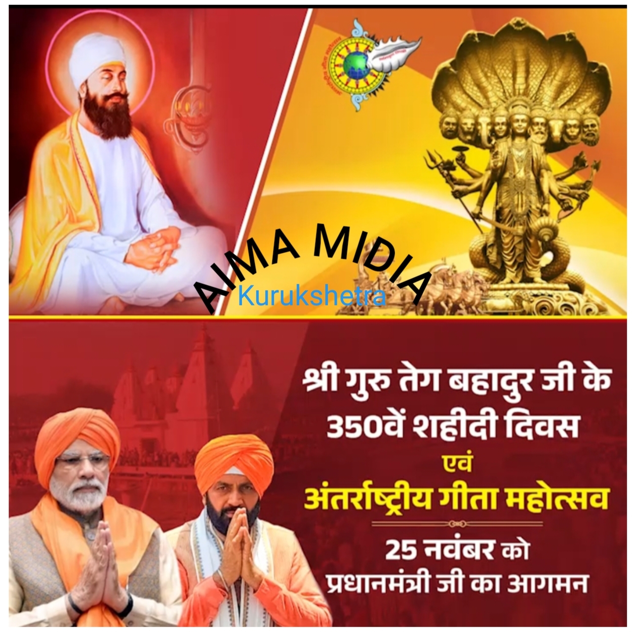 25 नवंबर को पावन भूमि कुरुक्षेत्र में एक ऐतिहासिक कार्यक्रम का आयोजन किया जाएगा, जिसमें हिंद की चादर श्री गुरु तेग़ बहादुर जी के 350वें शहीदी दिवस और अंतर्राष्ट्रीय गीता महोत्सव के अवसर पर प्रधानमंत्री श्री नरेंद्र मोदी जी विशेष रूप से शिरकत करेंगे।