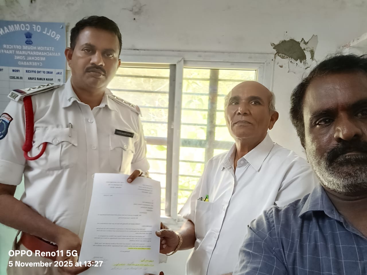 ఈరోజు ఏసిపి వెంకటయ్య గారు ట్రాఫిక్ కూకట్పల్లి.గారిని మరియు సర్కిల్ ఇన్స్పెక్టర్ ట్రాఫిక్ విద్యాసాగర్ రెడ్డి గార్లను కలిసి, పూణే- హైదరాబాద్.ఎన్ హెచ్-65 మీద చందానగర్ లో క్రాస్వాక్ ఏర్పాటు చేయాలని విజ్ఞాపన పత్రం సమర్పించడం జరిగింది. చందానగర్ వాసులు రోడ్డుకు ఇటు నుంచి అటువైపు గాని, అటు నుంచి ఇటువైపు గాని రావడానికి, పోవడానికి, వృద్ధులు, మహిళలు,విద్యార్థినీ విద్యార్థులు చాలా అవస్థలు పడుతున్నారు. వారి అవస్థలను దృష్టిలో ఉంచుకొని, క్రాస్వాక్ ఏర్పాట్లు చేయవలసిందిగా కోరడమైనది. వారు సానుకూలంగా స్పందించి, త్వరలో చర్యలు చేపడుతామని తెలియజేశారు. ఈ కార్యక్రమంలో పాలం శ్రీను పాల్గొన్నారు.