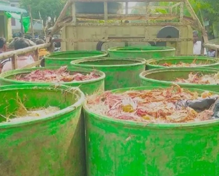 రెడ్డిగూడెం: చేపల చెరువులకు కోళ్ల వ్యర్థాలు రెడ్డిగూడెం (M) వ్యాప్తంగా 20-30 ఫంగస్, రూప్ చంద్ చేపలను పెంచుతున్నారు. చేపలు త్వరగా పెరగడానికి కోడి వ్యర్థాలను ఉపయోగిస్తున్నారు. స్థానిక వ్యాపారుల నుంచి వ్యర్థాలను సేకరించి వ్యానుల ద్వారా చెరువులకు తరలిస్తున్న వీటిపై అధికారులు ఏమాత్రం చర్యలు తీసుకోవడం లేదని స్థానికులు అంటున్నారు. దీంతో చెరువుల నుంచి వచ్చే దుర్వాసనతో ఇబ్బందులు పడుతున్నామన్నారు. అధికారులు స్పందించి చర్యలు తీసుకోవాలని కోరుతున్నారు.