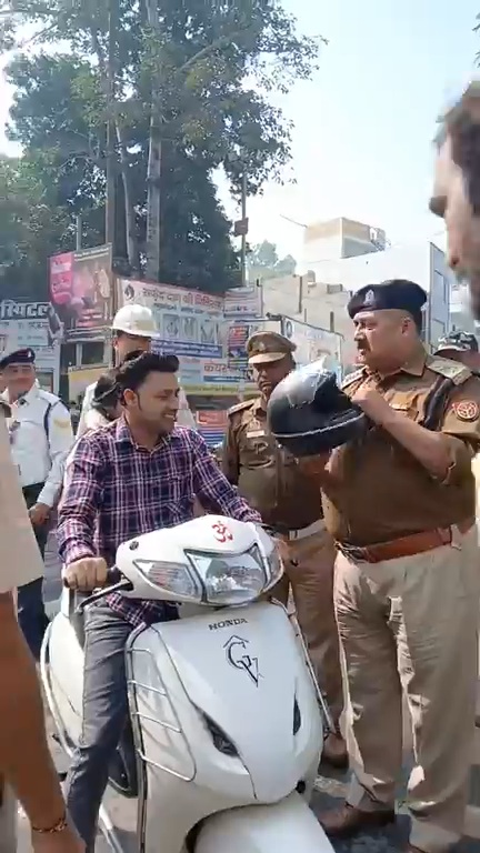 पीलीभीत में अनोखा ट्रैफिक अभियान, हेलमेट वालों को गुलाब, बिना हेलमेट वालों को 'जीवनदान'