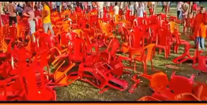 मोतिहारी हरसिद्धि मे पवन सिंह के आगमन पर खुशी की इजहार मे जनता ने कुर्सियां तोड़ी पवार स्टार की कुर्सी तोड़ कार्यक्रम सफल रहा