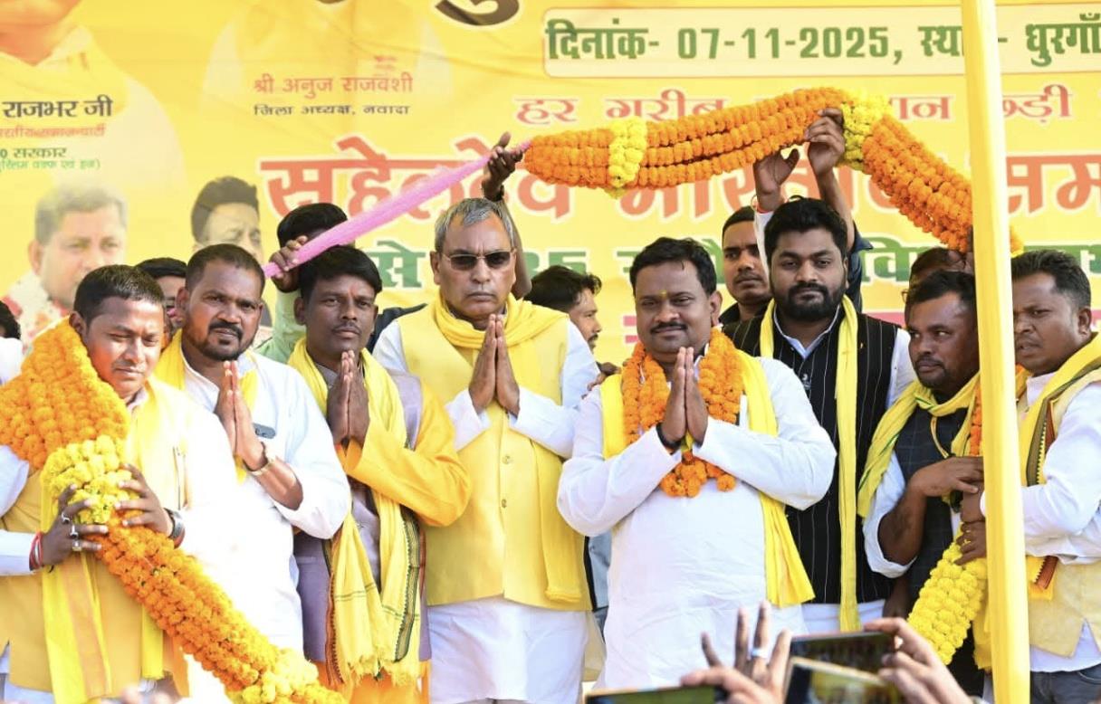जनपद नवादा के रजौली विधानसभा क्षेत्र के धुरगांव में आज सुभासपा (सुहेलदेव भारतीय समाज पार्टी) द्वारा आयोजित विशाल जनसभा में जनता का अभूतपूर्व उत्साह देखने को मिला। पूरा मैदान जनसैलाब में तब्दील हो गया, जहां लोगों ने “बदलाव चाहिए, अधिकार चाहिए” के नारों से पूरा माहौल गूंजा दिया।