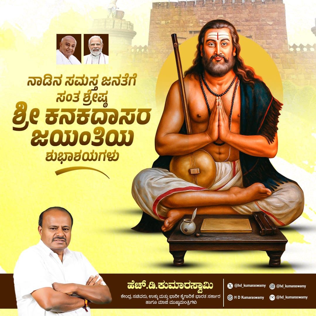 ಭಕ್ತಿಯಿಂದಲೇ ಶ್ರೀಕೃಷ್ಣನ ಒಲುಮೆಗೆ ಪಾತ್ರರಾದ ಶ್ರೀ ಕನಕರ ಜಯಂತಿಯ ಈ ಪುಣ್ಯದಿನದಂದು ಅವರಿಗೆ ಶಿರಸಾ ಪ್ರಣಾಮಗಳನ್ನು ಅರ್ಪಿಸುತ್ತೇನೆ.