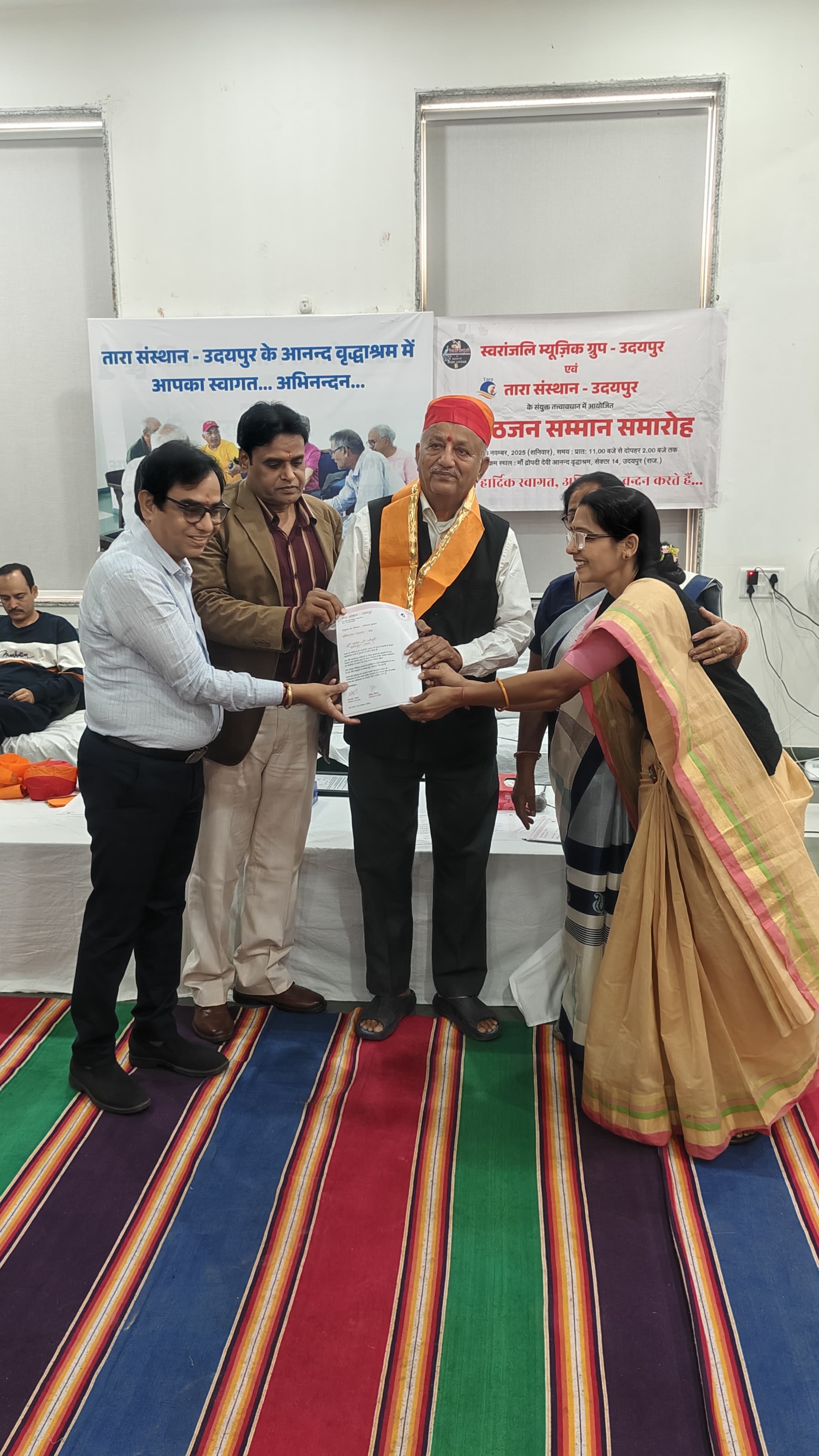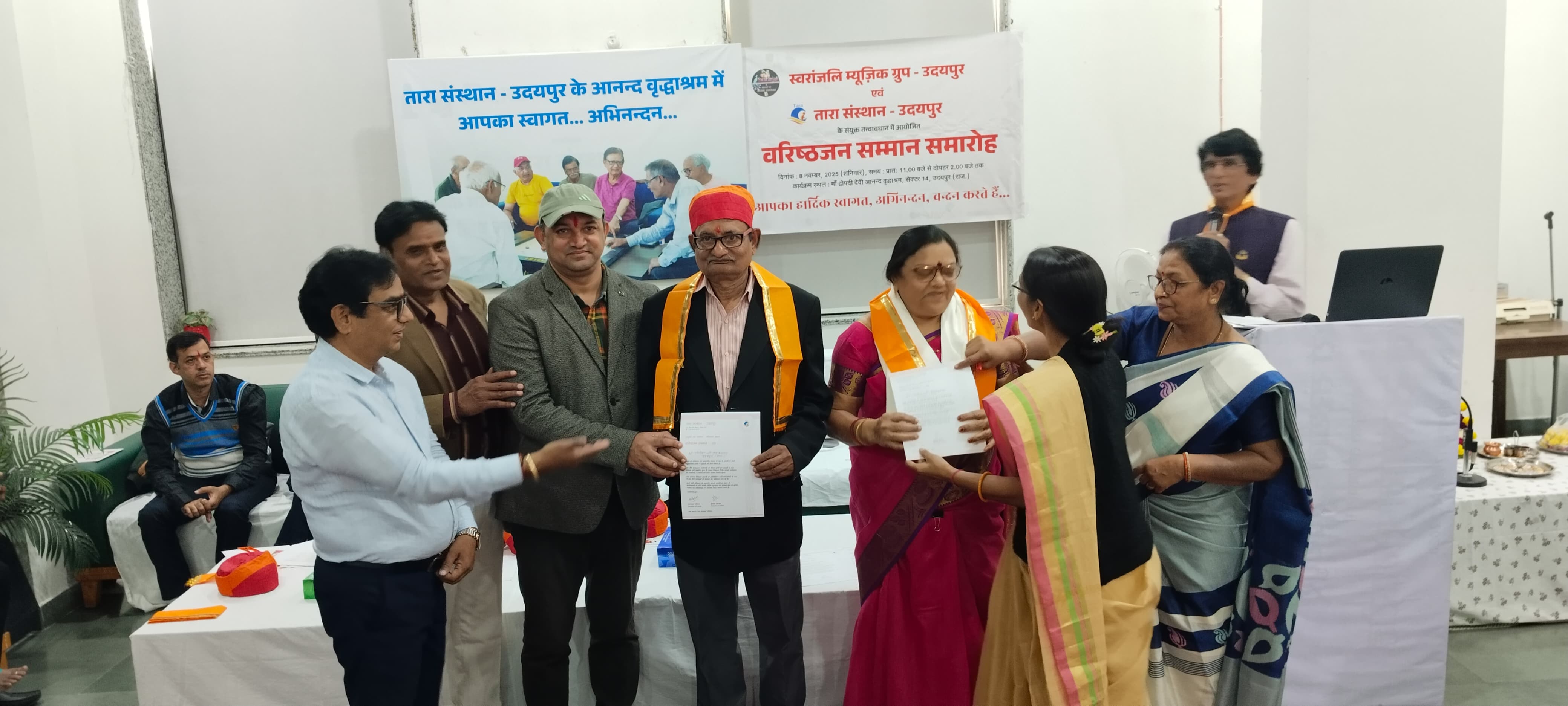 स्वरांजलि ग्रुप एवं तारा संस्थान उदयपुर द्वारा वरिष्ठजनों का सम्मान समारोह आयोजित