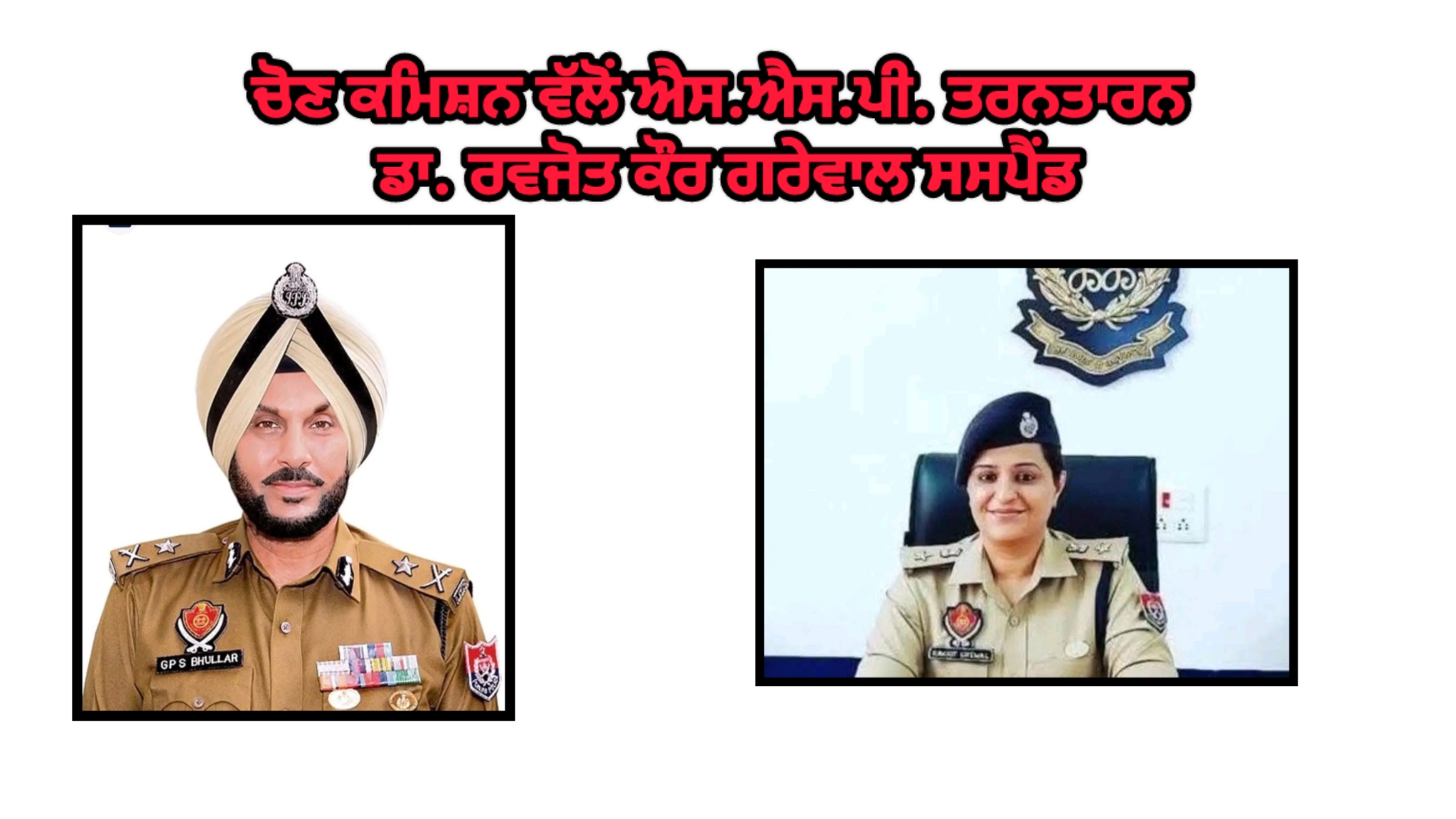 ਚੋਣ ਕਮਿਸ਼ਨ ਵੱਲੋਂ ਐਸ.ਐਸ.ਪੀ. ਤਰਨਤਾਰਨ ਡਾ. ਰਵਜੋਤ ਕੌਰ ਗਰੇਵਾਲ ਸਸਪੈਂਡ