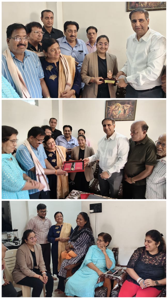 *भाजपा व्यापारी आघाड़ी प्रदेशाध्यक्ष वीरेंद्र कुकरेजा जी, मंगलवारी झोन पूर्व सभापति प्रमिला मथरानी जी,नारा नारी मंडल अध्यक्ष संजय चौधरी तथा भाजपा नेता दौलत कुंगवानी जी ने राजकुमार ढोलवानी जी की सुपुत्री डिंपल राजकुमार ढोलवानी को पहली ही बार में CA परीक्षा उत्तीर्ण करने पर शाल पहनाकर एवं भगवद गीता तथा आरती संग्रह भेंट कर सम्मानित किया एवं शुभकामनाएं दीं।*