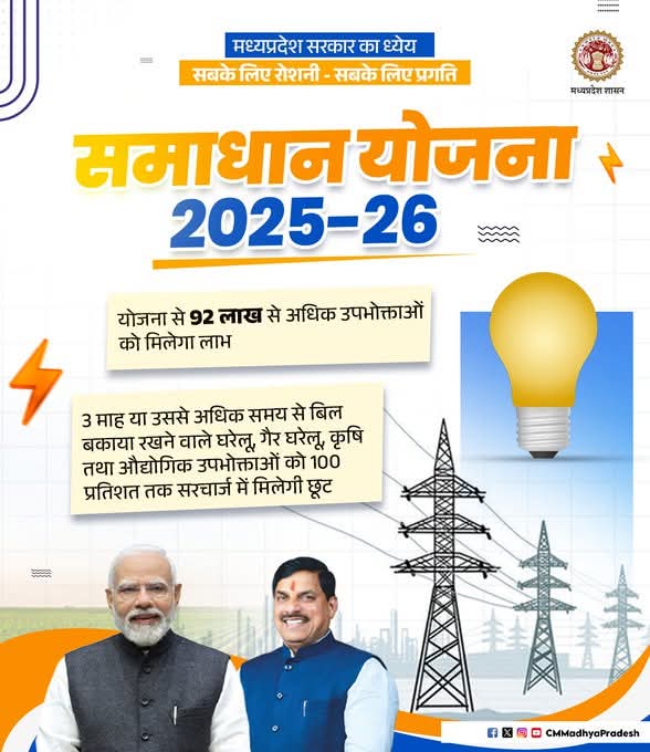 मध्यप्रदेश सरकार का ध्येय सबके लिए रोशनी - सबके लिए प्रगति समाधान योजना से 92 लाख से अधिक उपभोक्ताओं को मिलेगा लाभ #DrMohanYadav #CMMadhyaPradesh #MadhyaPradesh