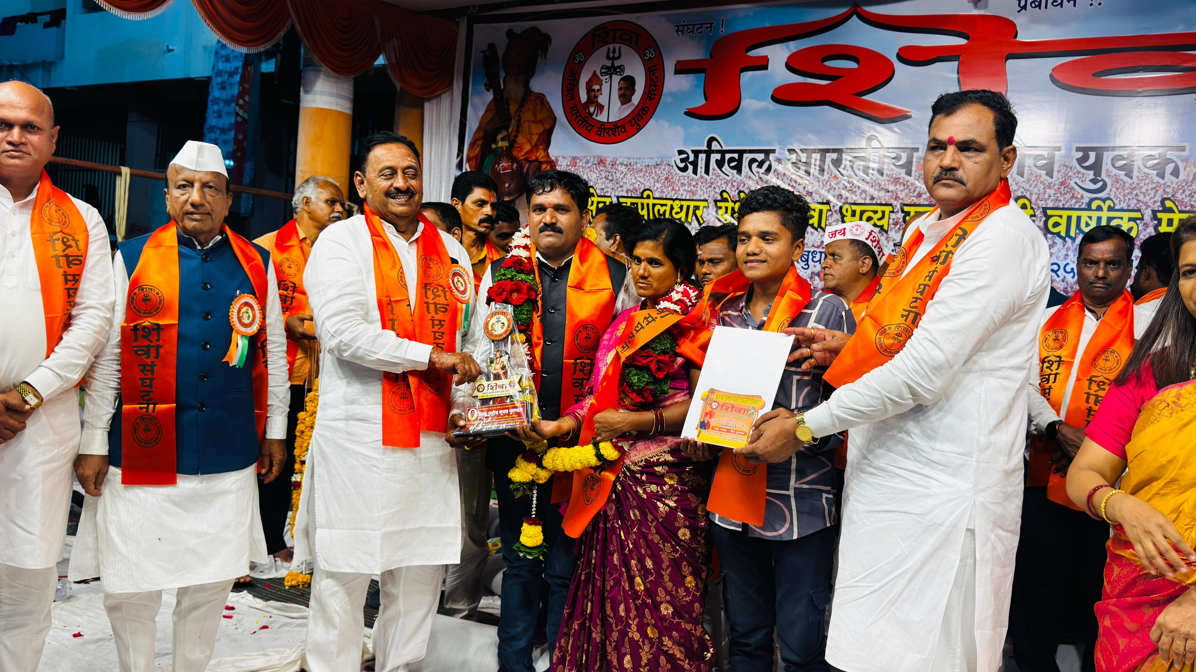 कपिलधार/मांजरसोँभा - शिवा अखिल भारतीय वीरशैव युवक संघटनेच्या वतीने गेल्या 30 वर्षापासून विविध क्षेत्रातील उत्कृष्ट काम करणाऱ्या मान्यवरांना पुरस्कार देऊन सन्मानित करण्यात येते, या संघटनेच्या पुरस्कारात राज्यातील उत्कृष्ट पत्रकाराचाही पुरस्कार देऊन त्यांचा सन्मान केला जातो 2025 चा दिला जाणारा शिवाराष्ट्रीय भूषण उत्कृष्ट पत्रकारिता पुरस्काराने त्यांना कपिलधार येथे सेवा संघटनेच्या मेळाव्यात राज्याचे सहकार मंत्री नामदार बाबासाहेब पाटील, शिवा संघटनेचे राष्ट्रीय तथा सेवा जनशक्ती पक्षाचे प्रमुख प्राध्यापक मनोहर धोंडे आमदार अर्चनाताई पाटील चाकूरकर यांच्यासह संत महंतांच्या उपस्थितीत 5 नोव्हेंबर 2025 रोजी बीड जिल्ह्यातील कपिलधार येथे अहमदपूर येथील आवाज बहुजनांचा न्यूज चॅनल चे संपादक पत्रकार शिवाजीराव रामराव गायकवाड यांना शिवा राष्ट्रीय भूषण उत्कृष्ट पुरस्कार देऊन सन्मानित करण्यात आले, शिवा संघटनेच्या वतीने गेल्या 30 वर्षापासून कार्तिकी शुद्ध पौर्णिमेच्या निमित्ताने बीड जिल्ह्यातील कपिलधार येथे सेवा संघटनेचे राष्ट्रीय अध्यक्ष प्राध्यापक मनोहर धोंडे यांच्या माध्यमातून राज्यव्यापी मेळावा घेण्यात येतो, या मेळाव्यात विविध क्षेत्रातील उत्कृष्ट काम करणाऱ्या मान्यवरांना पुरस्कार देऊन त्यांचा सन्मान केला जातो यामध्ये पत्रकारांचाही समावेश असून 2025 च्या पत्रकार पुरस्कारामध्ये अहमदपूर येथील आवाज बहुजनांचा न्यूज चॅनल चे संपादक पत्रकार शिवाजीराव गायकवाड यांना शिवाराष्ट्रीय भूषण उत्कृष्ट पुरस्कार देऊन सन्मानित करण्यात आले, यावेळी शिवानंदतात्या हेंगणे, माजी नगरसेवक अभय मिरकले यांच्यासह आदी मान्यवरांची उपस्थिती होती, कमी कालावधीत उत्कृष्ट पत्रकारिता करून महाराष्ट्र राज्यामध्ये अत्यंत मानाचा व सन्मानाचा समजल्या जाणाऱ्या पुरस्कारास पात्र ठरल्याबद्दल शिवाजीराव गायकवाड यांचे विविध स्तरातून अभिनंदन होत असून शुभेच्छांचा वर्षाव होत आहे.
