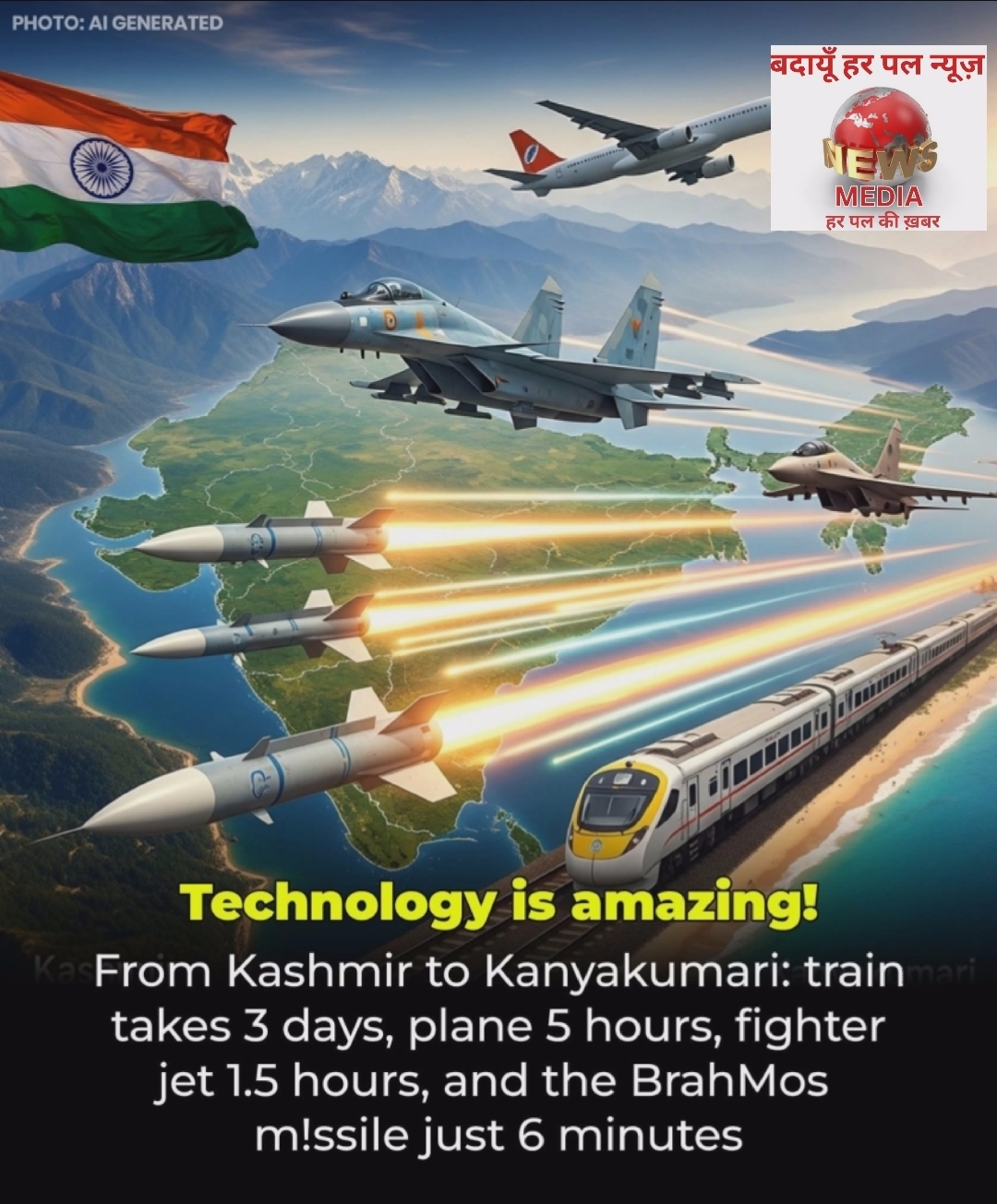 कश्मीर से कन्याकुमारी: ट्रेन से 3 दिन, विमान से 5 घंटे, लड़ाकू विमान से 1.5 घंटे और ब्रह्मोस मिसाइल से सिर्फ 6 मिनट.