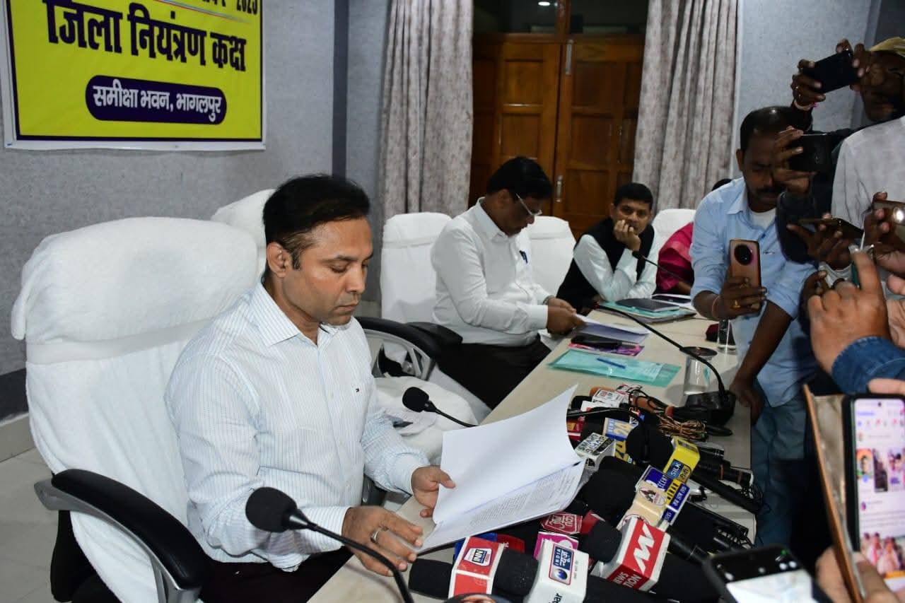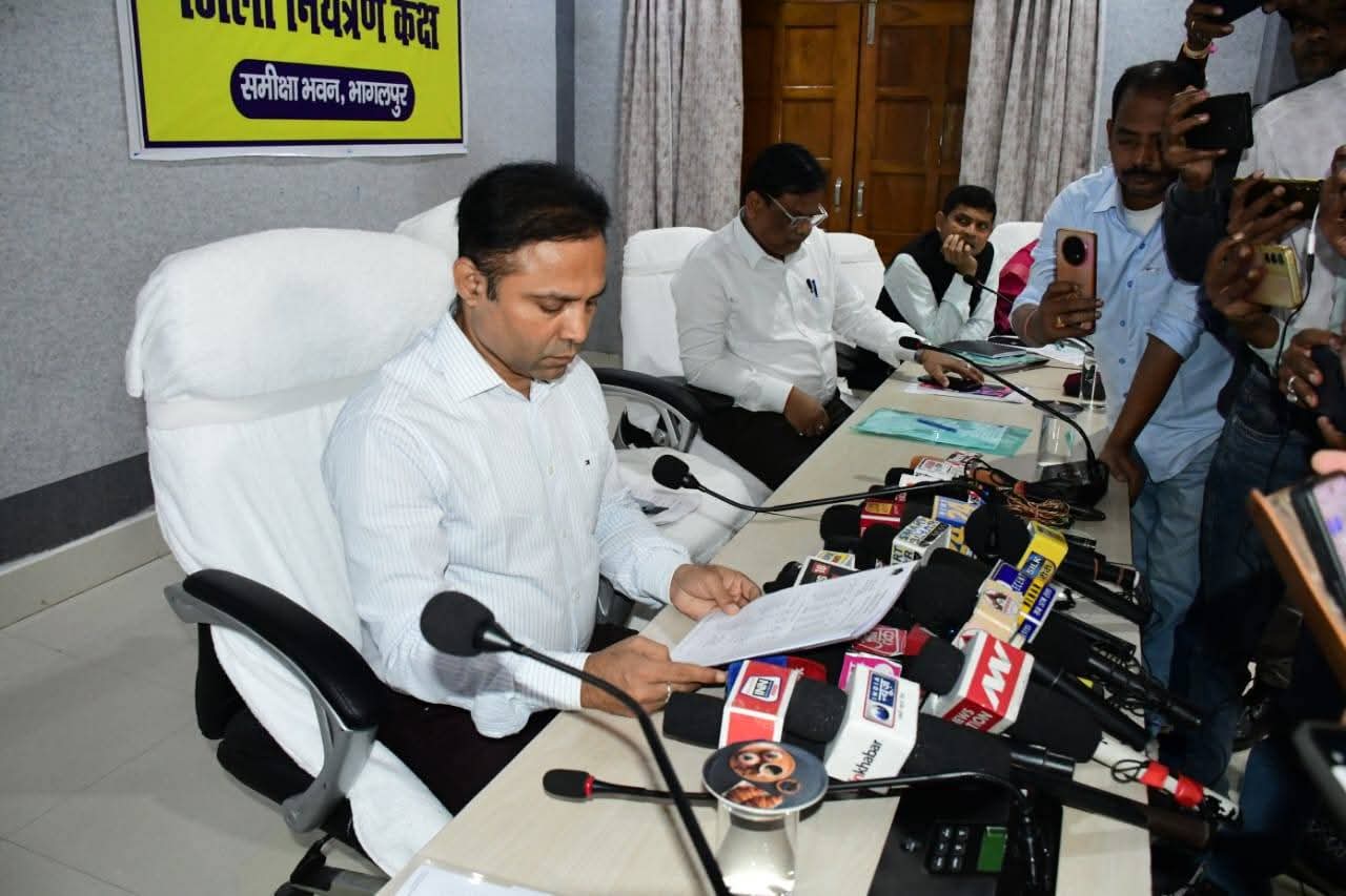 भागलपुर 9 नवंबर 2025, जिला निर्वाचन पदाधिकारी- सह- जिलाधिकारी, भागलपुर, डॉक्टर नवल किशोर चौधरी एवं वरीय पुलिस अधीक्षक श्री हृदय कांत की संयुक्त अध्यक्षता में भागलपुर के समीक्षा भवन में संवाददाता सम्मेलन का आयोजन किया गया।