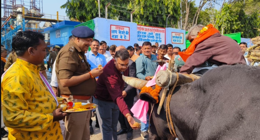 जिलाधिकारी अक्षय त्रिपाठी ने पुलिस अधीक्षक रामनयन सिंह व अन्य अधिकारियों, क्षेत्रीय गणमान्य व संभ्रान्तजनों तथा प्रगतिशील गन्ना कृषकों के साथ वैदिक मंत्रोचार के बीच पारले चीनी मिल,परसेण्डी के डोंगा में गन्ना डालकर पेराई सत्र 2025-2026 का शुभारम्भ किया,पेराई सत्र के शुभारम्भ अवसर पर मिल गेट पर पहुंची प्रथम बैलगाड़ी के बैलों की पूजा कर गुड़ खिलाया गया तथा बैल गाड़ी के साथ गन्ना लेकर आये गन्ना कृषकों को माला पहनाकर स्वागत किया व अंगव़स्त्र भेंट कर सम्मानित किया,इस अवसर पर डीएम व एसपी ने गन्ना किसानों और मिल प्रबन्धन को सफल पेराई सत्र के लिए शुभकामनाएं भी दी,