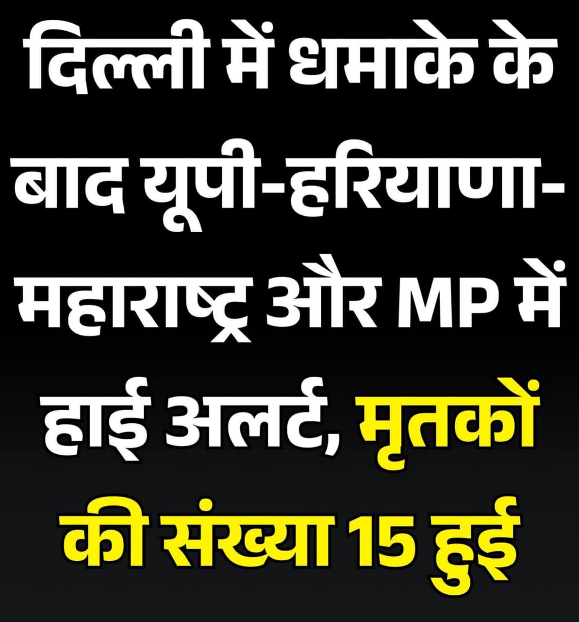 *दिल्ली में धमाके के बाद यूपी-हरियाणा-महाराष्ट्र और MP में हाई अलर्ट, मृतकों की संख्या बढ़कर 15 हुई...*