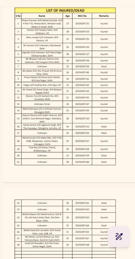 दिल्ली ब्लास्ट में घायलों व मृतकों की सूची! 🥹