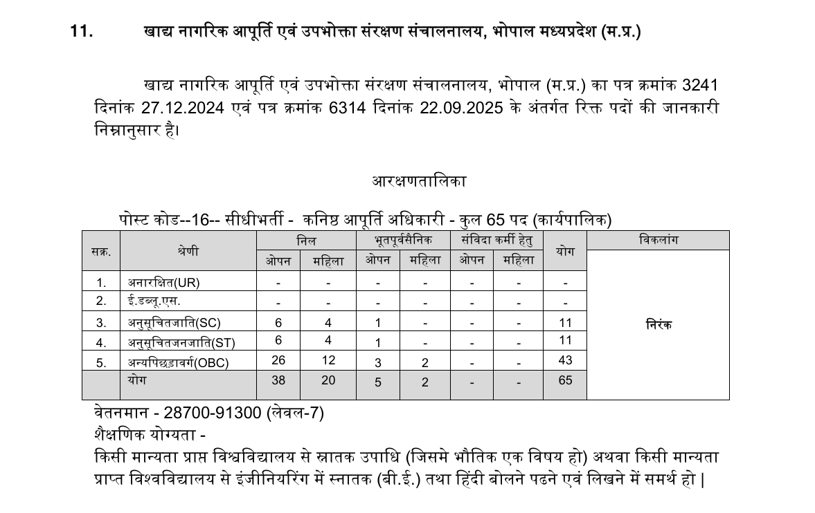मध्यप्रदेश खाद्य नागरिक आपूर्ति विभाग की नई भर्ती सूची ने एक बार फिर साबित कर दिया कि अब सरकारी नौकरियाँ “योग्यता” से नहीं, बल्कि “जाति” से तय होंगी। कुल 65 पदों में 100% आरक्षण — यानी सीधे शब्दों में कहा जाए तो सवर्ण समाज के लिए अब कोई स्थान नहीं!