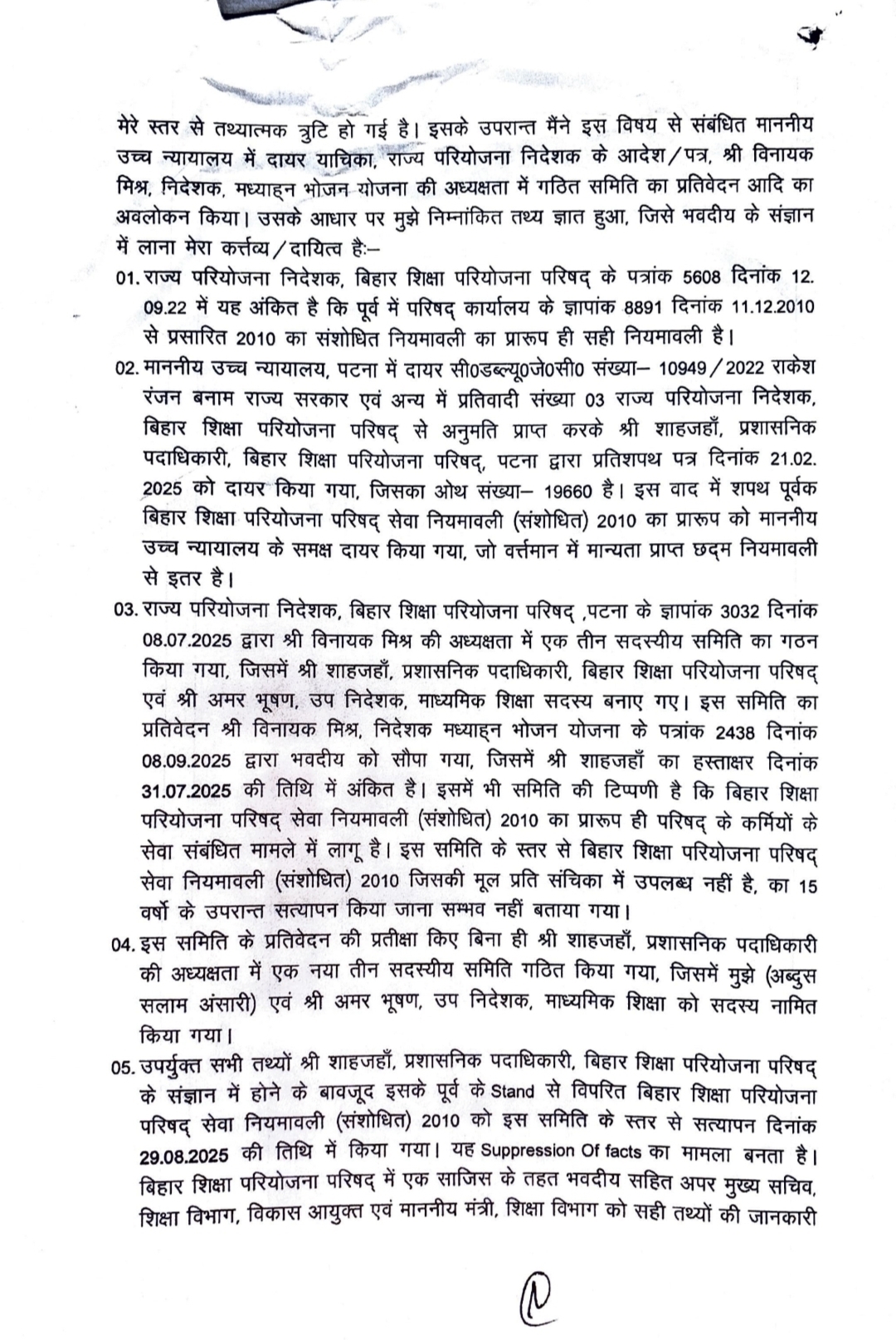 बाद में समिति के ही दो सदस्य — अब्दुस सलाम अंसारी (उप निदेशक, माध्यमिक शिक्षा) और अमर भूषण (उपनिदेशक, शिक्षा विभाग) — ने अपनी अनुशंसा वापस लेते हुए बीईपीसी के अधिकारियों पर गंभीर आरोप लगाए हैं। उन्होंने आरोप लगाया कि समिति के समक्ष फर्जी अभिलेख और झूठी संशोधित नियमावली (2010) प्रस्तुत की गई।