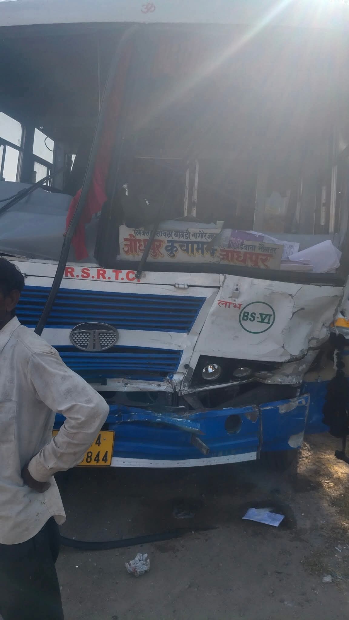 बावड़ी के पास एक ट्रेलर और रोडवेज बस में जोरदार की भिड 6 घायल और घायलों को जोधपुर हॉस्पिटल में भेजा