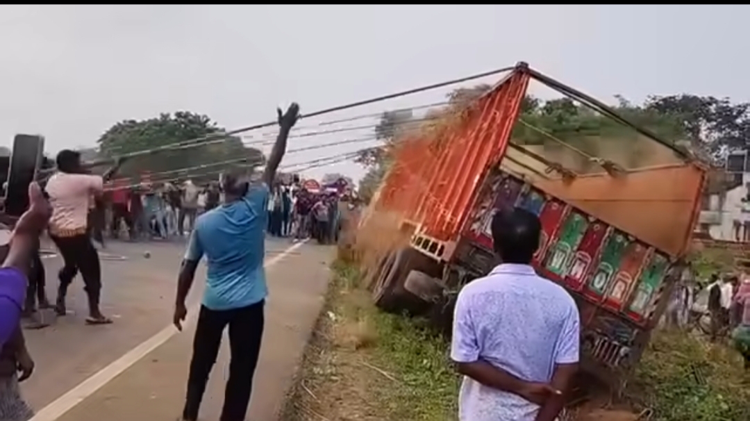 উলটে যাওয়া লরীকে টেনে তুললো জনতা। মানুষ একজোট থাকলে সব করতে পারে। ঐক্যবদ্ধ হয়ে এইভাবেই একটি লরীকে তুলে ফেললো জনতা।