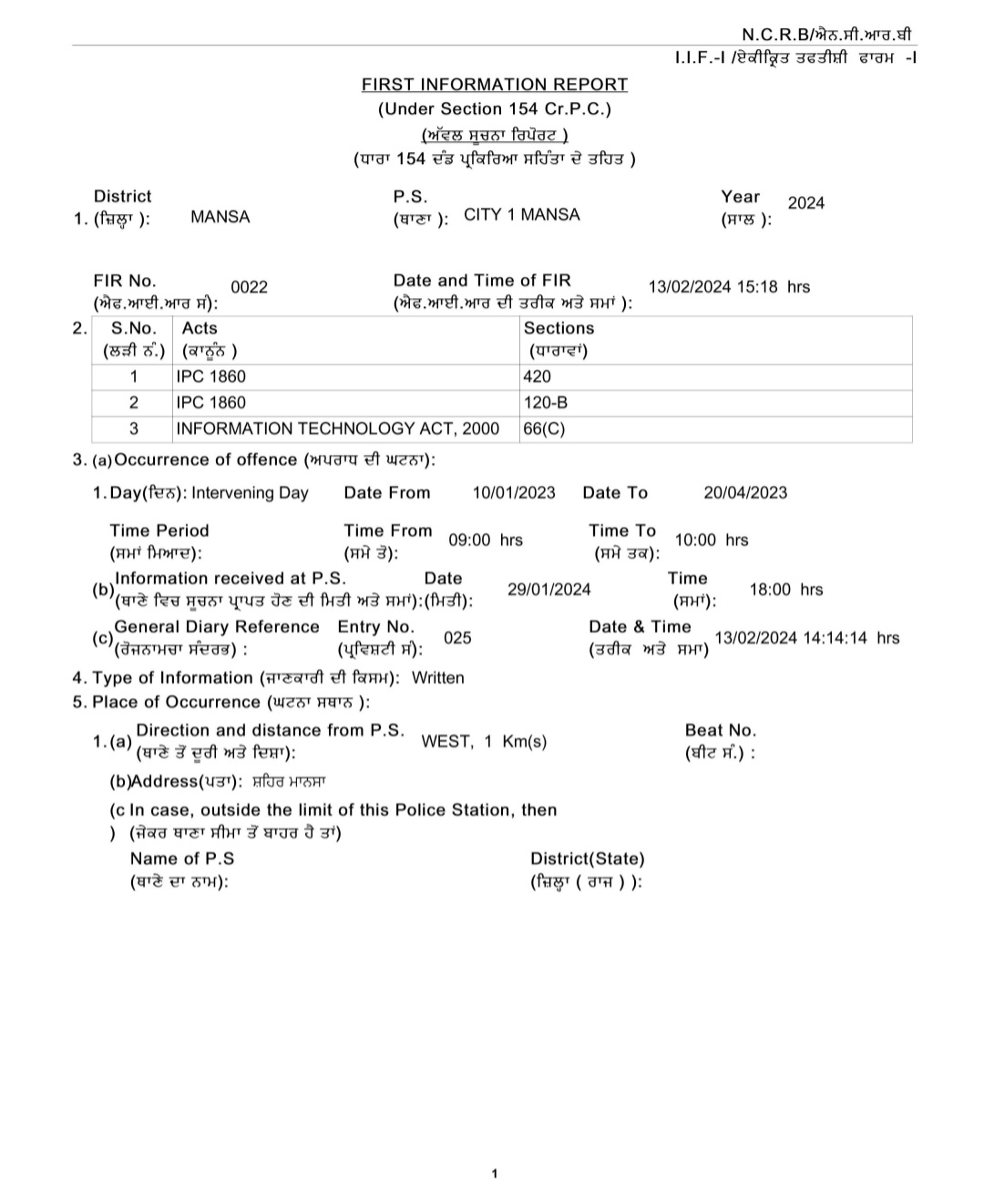 Nanak singh Punjab Mansa Mandi: Registrar की शिकायत पर FIR No. 22/24 में DIG Nanak Singh पर रिश्वत, कथित फर्जी कार्रवाई और दस्तावेज़ चोरी के आरोप दर्ज