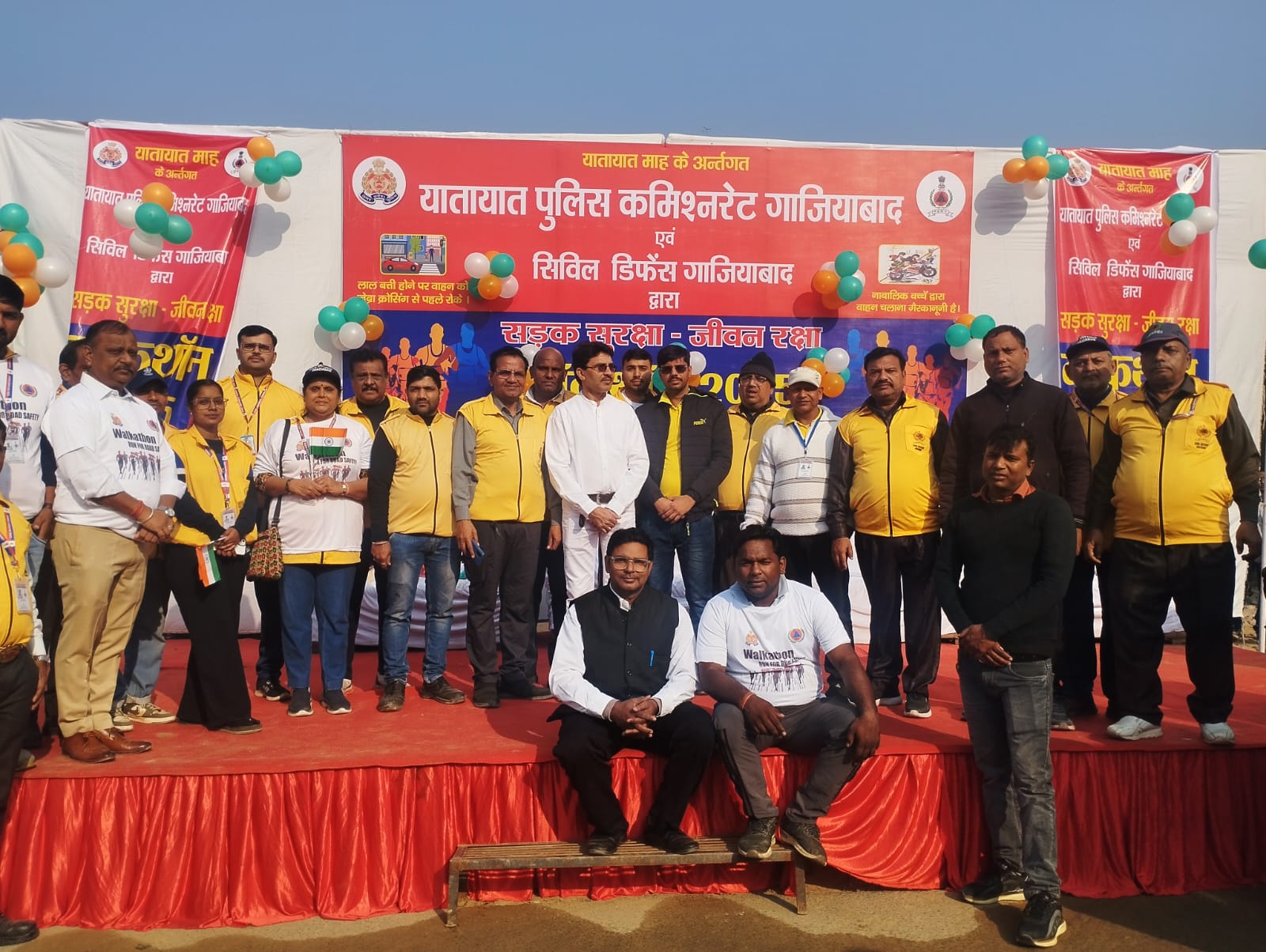 गाजियाबाद। कवि नगर क्षेत्र स्थित रामलीला मैदान में सड़क सुरक्षा माह के अंतर्गत यातायात पुलिस कमिश्नरेट एवं सिविल डिफेंस द्वारा वाॅकथाॅन 2025 का आयोजन किया गया।